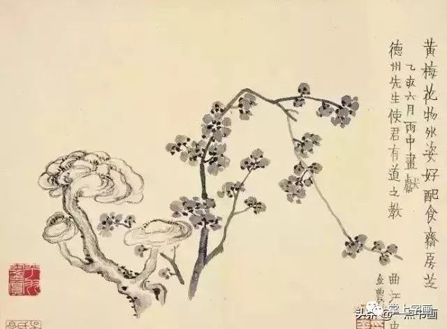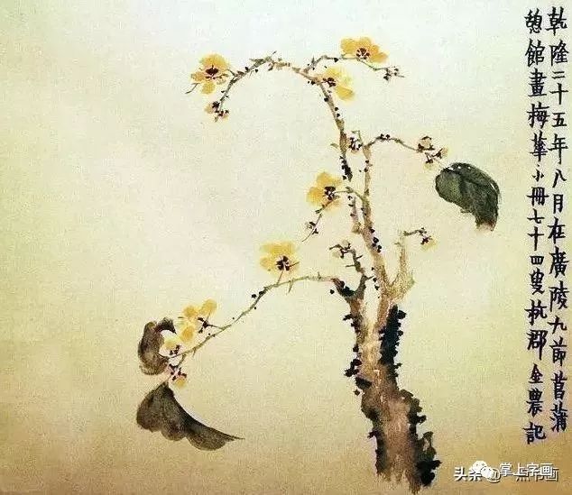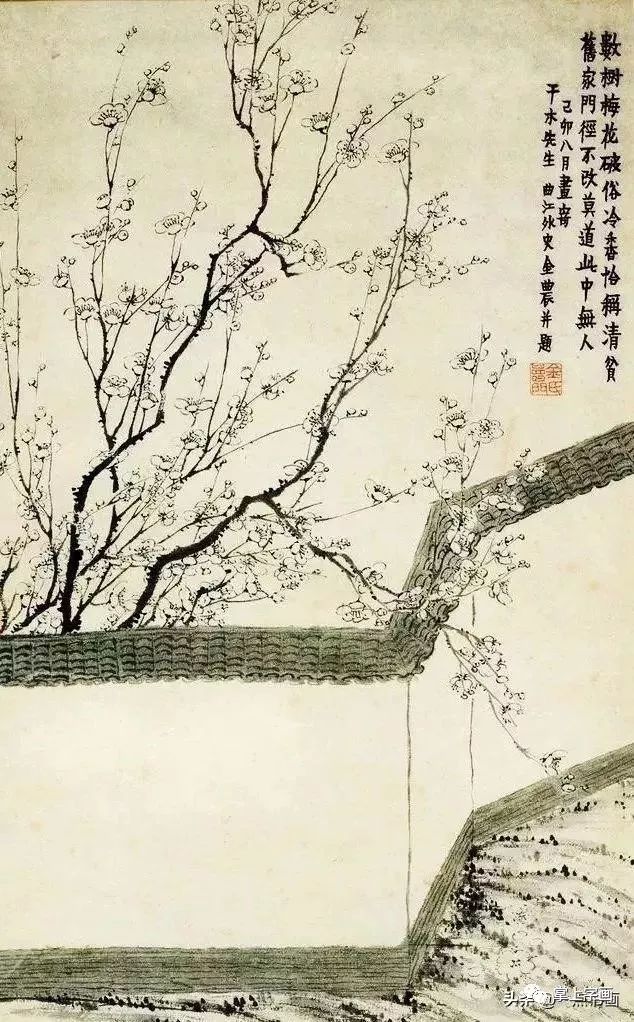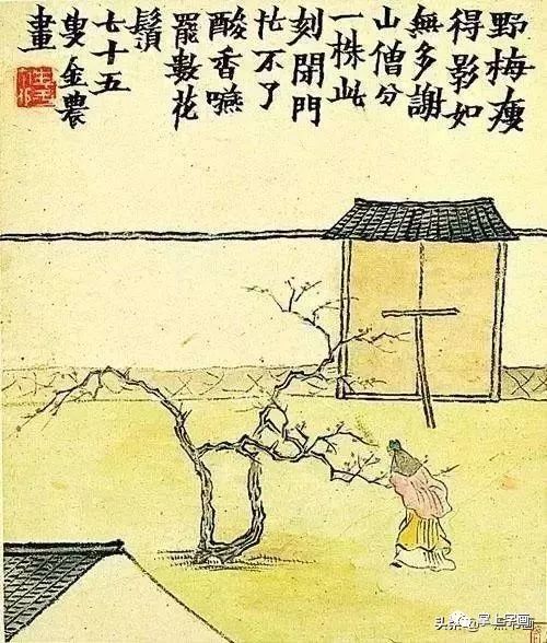 金农(1687—1763),清代书画家,扬州八怪之首。金农以博学工诗名世,擅写漆书、精篆刻、鉴赏,善画竹、梅、鞍马、佛像、人物、山水。金农尤精墨梅,所作梅花,枝多花繁,生机勃发,古雅拙朴。