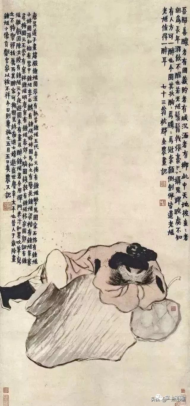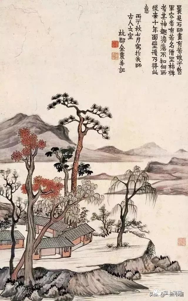金农天性散淡,他生活在康、雍、乾三朝,因此他给自己封了个“三朝老民”的闲号。金农具有的完全是一个浪漫诗人的情怀,一个不修边幅的书画家风度,一个无拘无束的野逸文人气质。