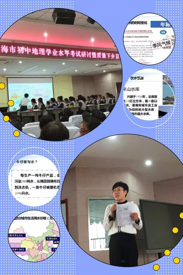 三位不同地区的老师分别展示了三节示范课:分别是威海市新苑学校的徐华敏老师的《黄河的治理与开发》、荣成区的宋文娟和文登区的张华娟老师的《水资源》。