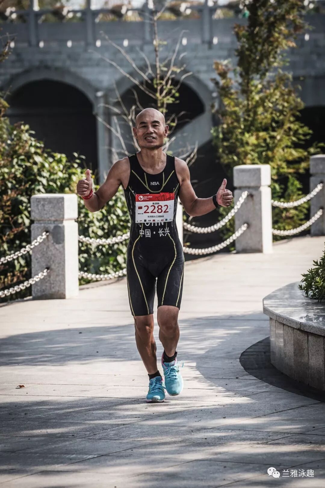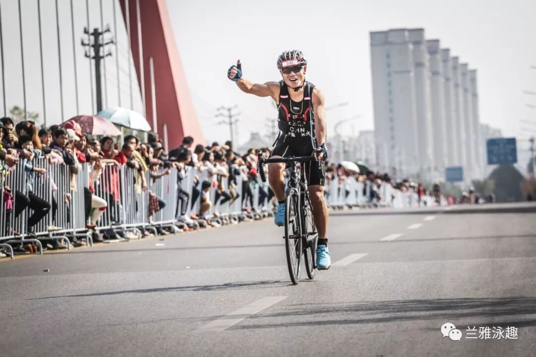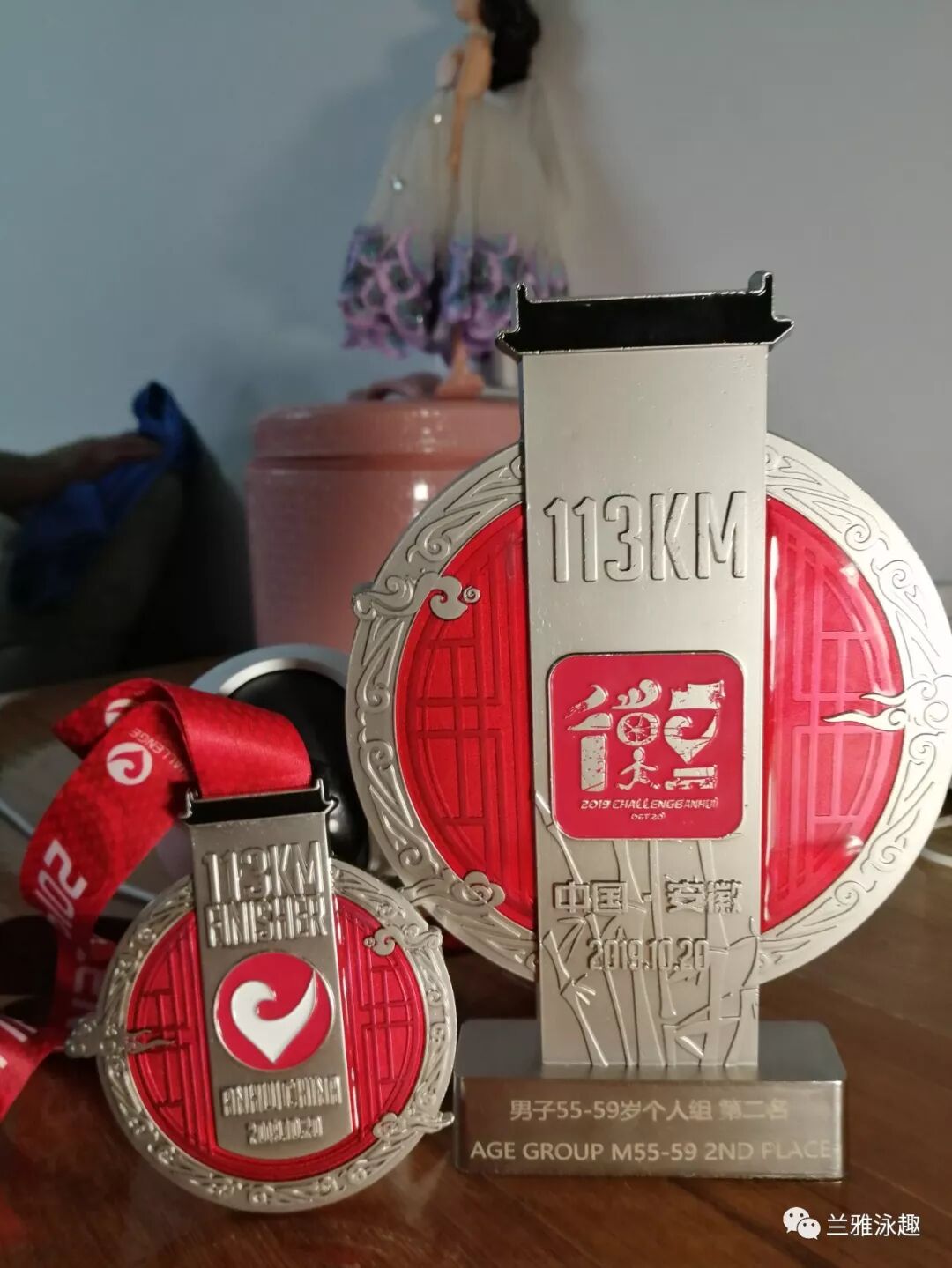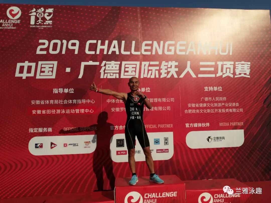 来自浙江省长兴县选手朱洪林,参加了半程比赛,总里程113公里(游泳1.9公里,自行车90公里和跑步21.1公里),勇夺该组级别的亚军!