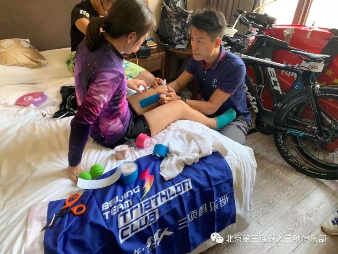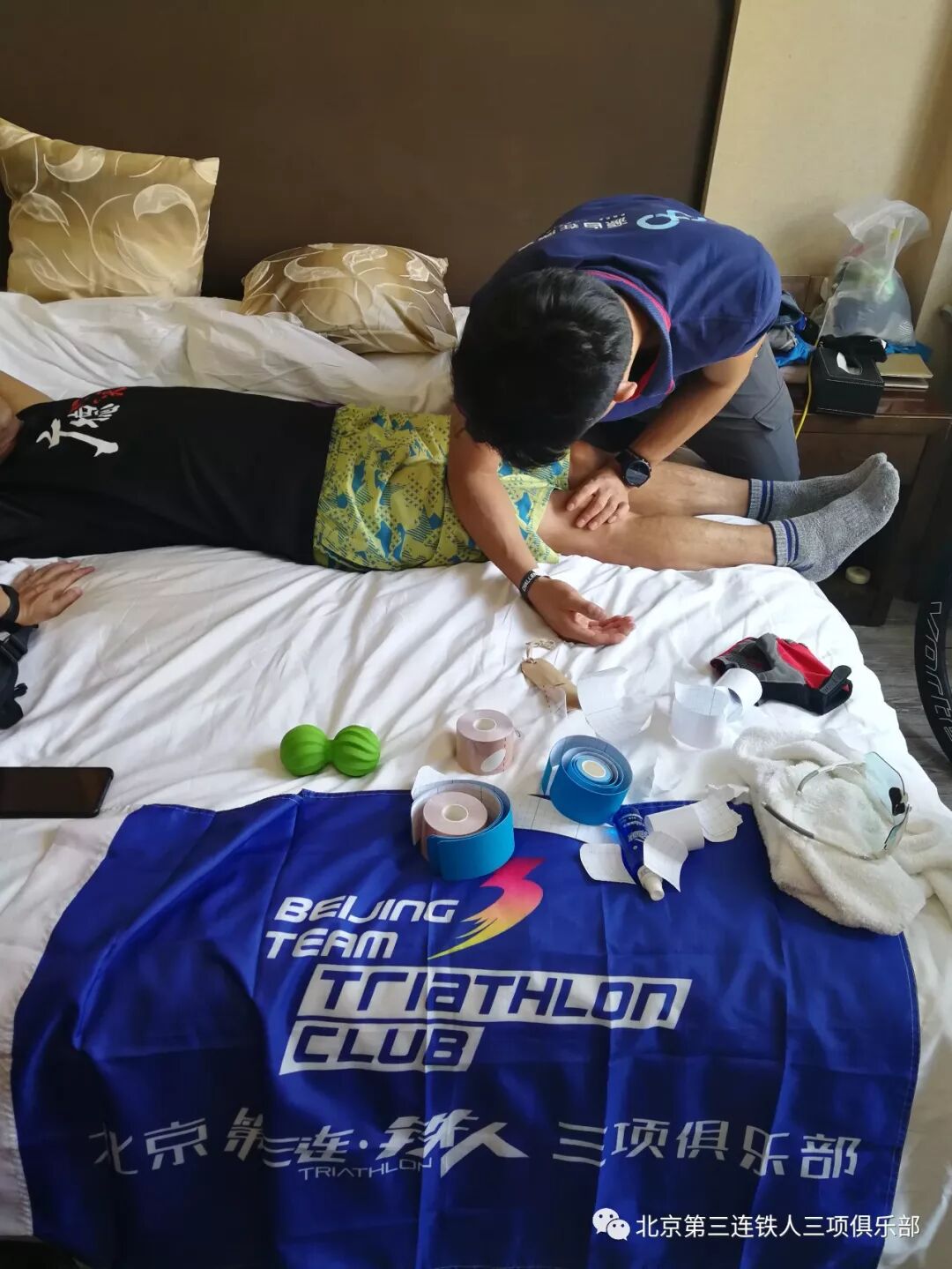 除了获得了优秀成绩,在比赛过程中还涌现了很多让人感动的画面:参加大铁距离比赛的曹璟辉,运用自身的专业知识和职业背景,免费在赛前帮三连的参赛选手们做简单物理治疗和科学打肌贴,大家赛后的反馈也都非常不错,可以说是相当的赞了,以后璟辉参加的比赛,大家都不要轻易错过哦(可惜小伙儿已经有了女友,还在顺利完赛后狂发狗粮...