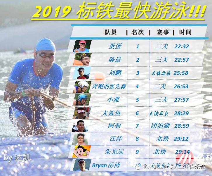 由于北铁的骑行和跑步赛道难度较大,只在游泳项目榜单发生了变化。各大标铁榜单如下:
