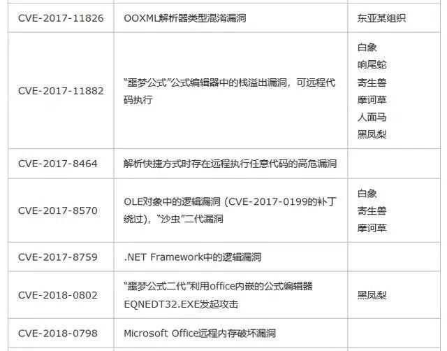 三、 APT攻击常利用的安全漏洞