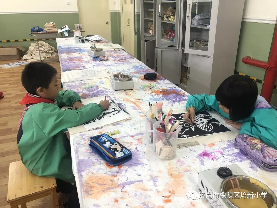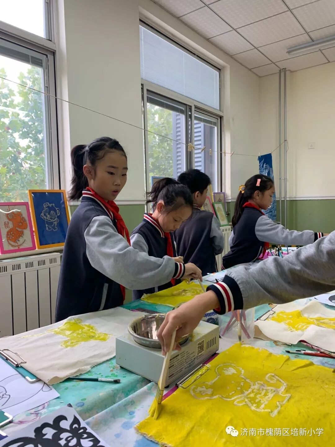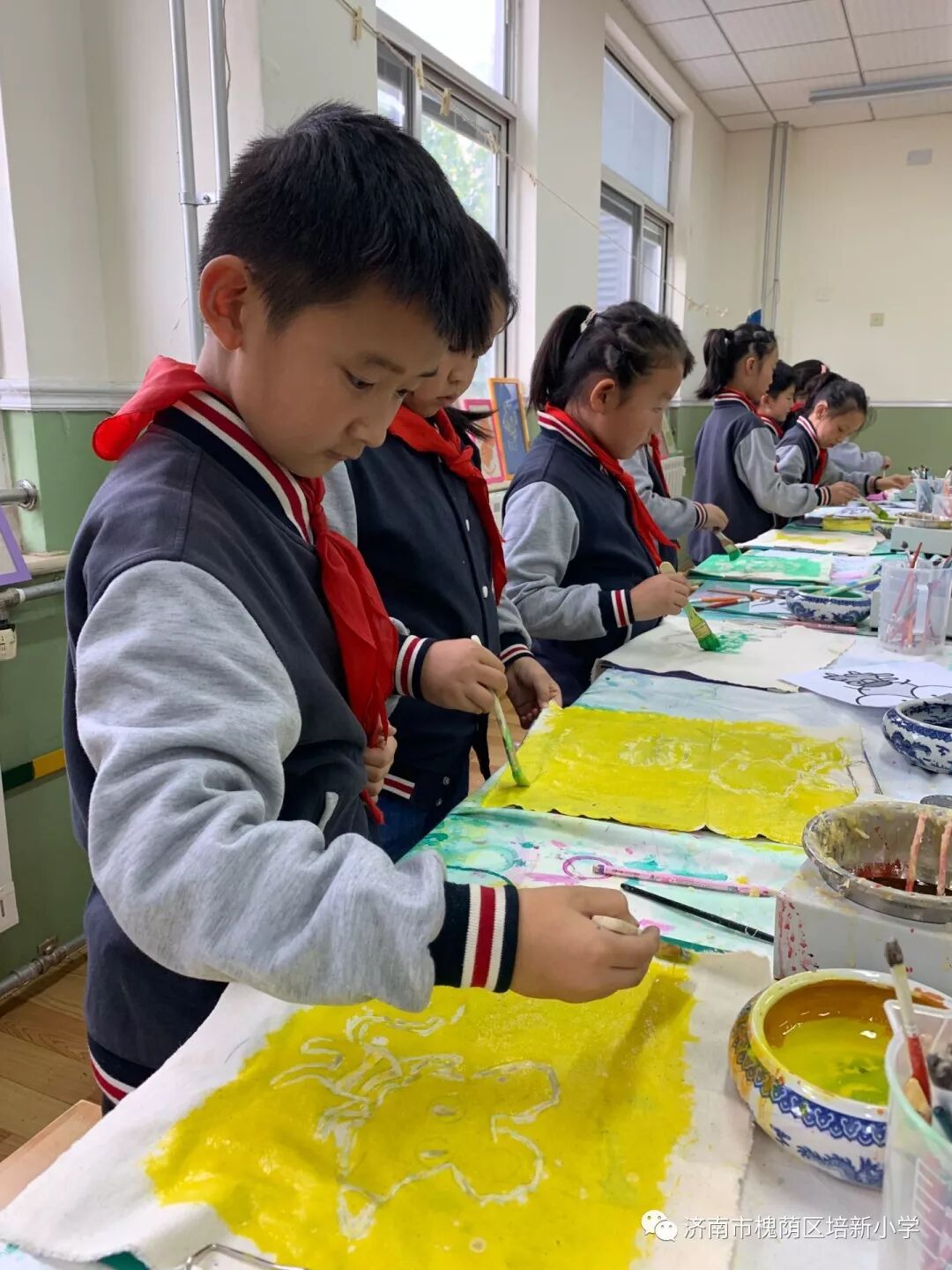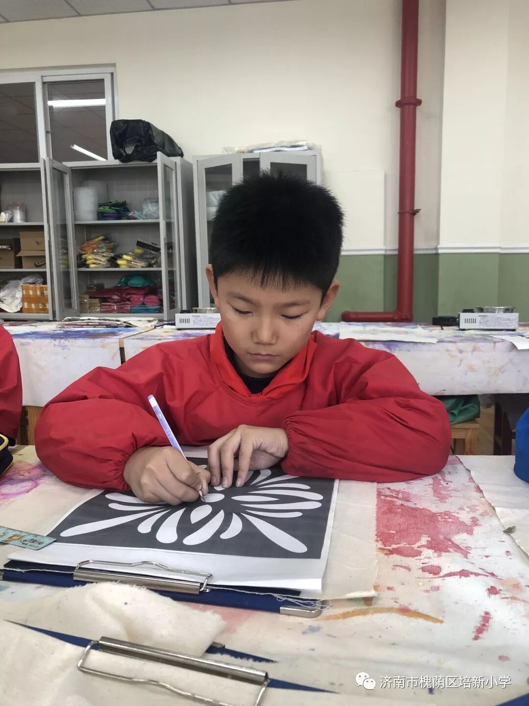 上色完成后,最后一个步骤就是脱蜡了,脱蜡完成后,一张张布在队员们的笔下发生了巨大变化,变成一幅幅美丽的画卷,队员们富有想象力的创作,给作品注入了灵魂,变得生动、美丽。