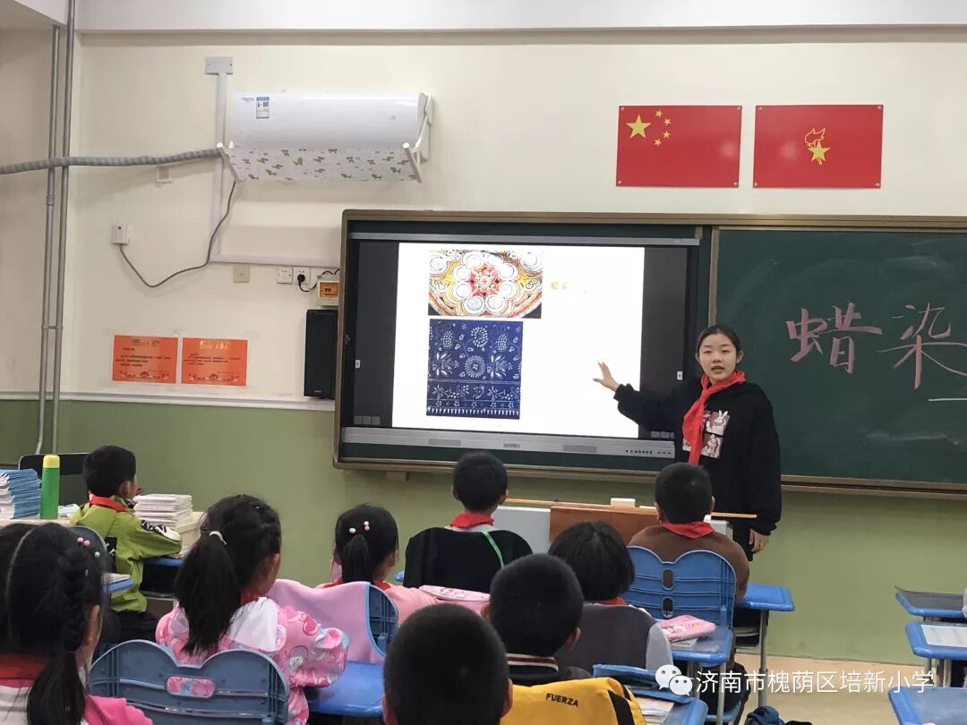 队会课上,队员们跟辅导员老师一起,了解蜡染的起源与发展,知道这是一项古老而美丽的中国优秀传统文化,队员们纷纷表示,要将这项技艺传承下去,做新时代好队员。