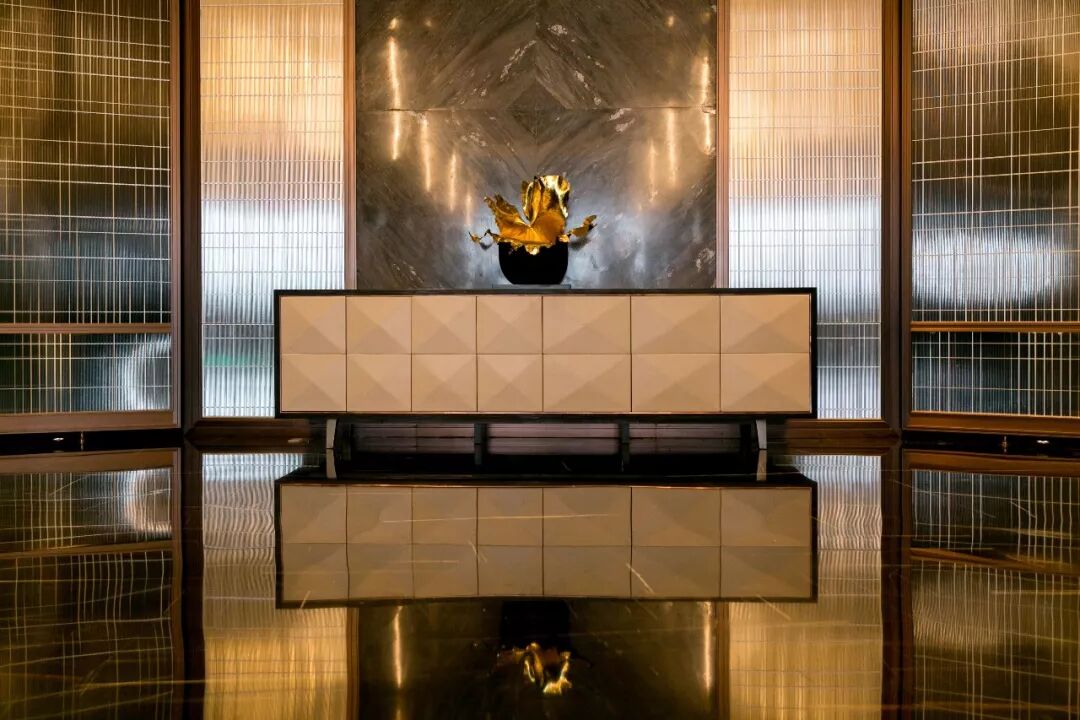 酒店的入口设计也颇有新意,建筑外观聘请美国NBBJ最负盛名的设计大师亲自操刀,呈现出简约硬朗的流线型帆船形状。