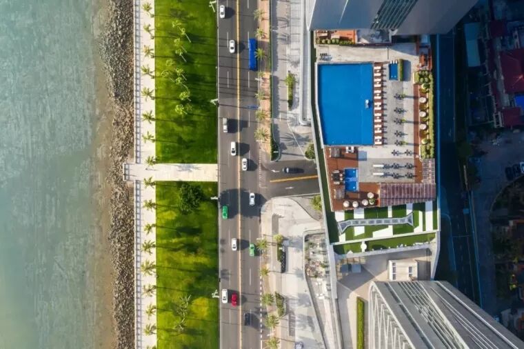 珠海仁恒洲际酒店正位于其中最南侧的最高帆船之中,成为港珠澳大桥珠海段旁最耀眼的地标。
