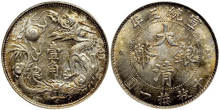 总述:这枚小小的银币是以小皇帝的名义所发行的最后的几枚帝国钱币之一。它以一条栩栩如生的龙为特征,这条龙同样出现在同年发行的更大面额的银币上,以及一枚由湖南省发行的罕见民国地方钱币上。带有该龙纹的版本,只有这枚硬币相对便宜,因此它非常受藏家欢迎。
