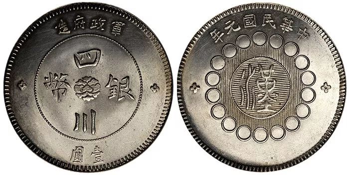 总述:1912年,新的军政府接管了成都造币分厂,并将其更名为四川造币厂。或许该币的诞生并不是为了成为“地方货币”,其背面图案(如图所示,NGC将该币背面作为正面进行了封装)有18个圆环,代表中国的每一个省份。中间的文字为“汉”,以篆书形式呈现,它是新政府的象征。