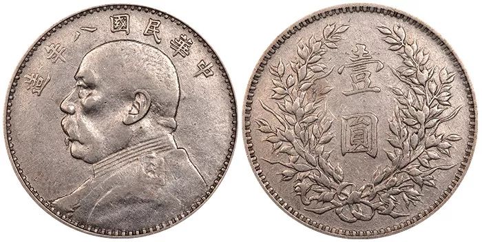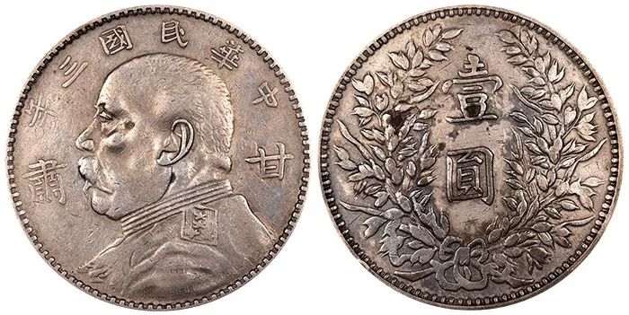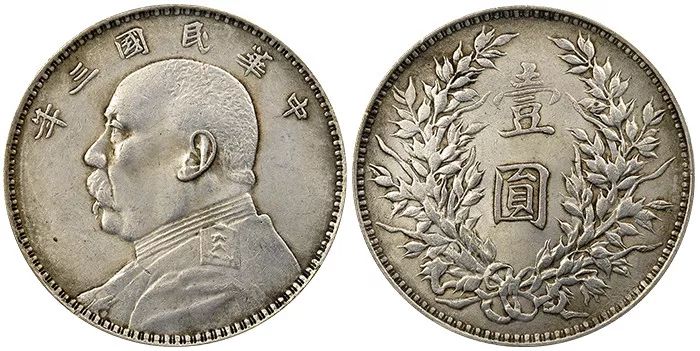 总述:这是本列表上非常靠前的1914年袁世凯像壹圆银币的中圆大小版本。更小面额的贰角和壹角银币亦有铸造。