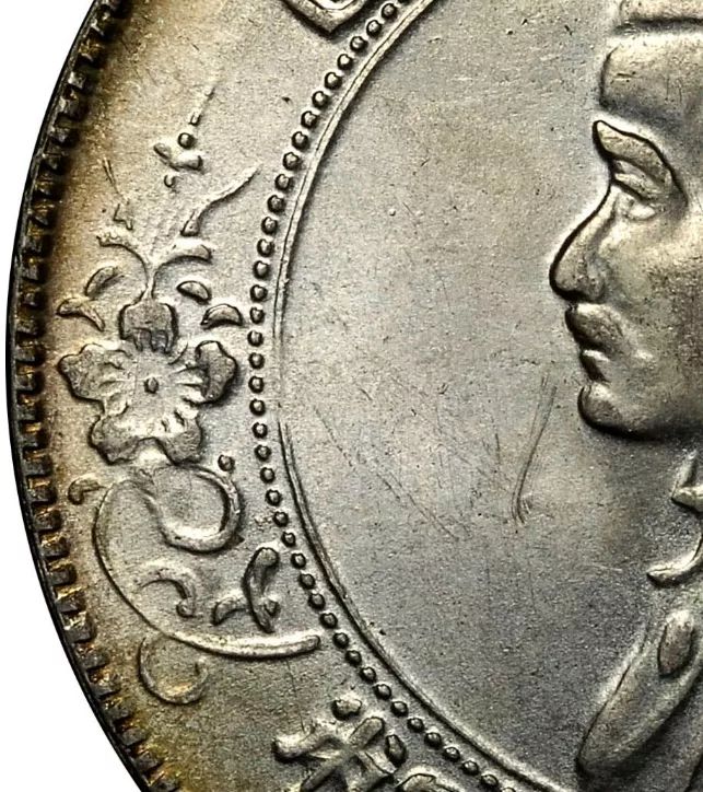 提示:自20世纪70年代以来,这枚硬币的伪造版本,包括银币和金币,都被很好地记录在案。这些硬币是天津造币厂模具的最高水平的代表之一,使得粗糙的假币很容易被鉴别出来。具有迷惑性的假币通常可以通过匹配同模伤和打磨痕迹鉴别出来。