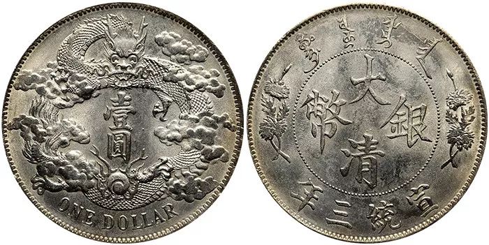 总述:作为清朝最后发行的硬币之一,该币图案中的龙盘旋在大片云朵之间,极其精美。币模由Luigi Giorgi在天津造币厂制作,天津、南京和武昌造币厂都铸造了该币。虽然该枚精美的银币发行量很大,但获得高分的非常稀少且极受欢迎。