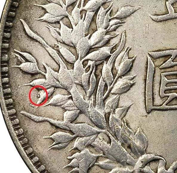 总述:为了替代仍在流通中的早期货币与外国银元,在1914年和之后的几年里,袁世凯像硬币被大规模铸造。此币存在许多版别,包括这个在硬币背面蝴蝶结(边饰)内左上方有小圈的神秘版本。这么做的目的并不明确。许多人认为它被添加到模具里是为了标识后来在沈阳铸造的版本,它们是在危机时期为了稳定经济而铸造的。