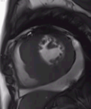 请大家描述征象并作出诊断,先从电影序列上看室壁运动情况,然后看T1WI和T2WIFS(压脂),观察心肌信号改变