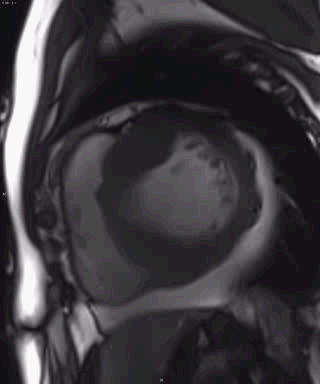 左心室心肌明显增厚,以室间隔为著,两腔心和三腔心、短轴位信号增高,心尖部变薄,T2WIFS信号增高,提示有水肿,延迟斑片状强化,模糊,以外膜和中层为主,提示肥厚性心肌病。
