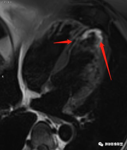 左心室侧壁fS高信号,延时强化,结合病史考虑心肌梗死