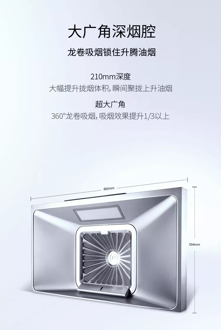 这款烟机针对的问题非常精准:超大吸力,1秒净烟——所以产品各个方面的研发设计都紧紧围绕这个核心问题。 大广角的深烟腔不仅更快速,同时能避免高层烟道易阻塞问题,亲测爆炒时,油锅里迸发出的那种腻味,平时会停留在空气里很久,但使用8229S系列,1-2秒内就几乎消失了,特别适合对烟味敏感的人群。