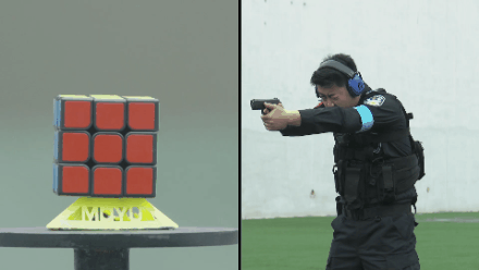先别着急献上你的膝盖,还有更难的:网球、魔方、乒乓球,还有透过玻璃孔打气球......这脑洞也太大啦,目标还能小一点再小一点吗?