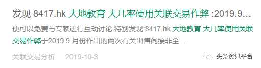 对于这起事件,从事关联交易分析的业内人士表示,“大地教育大几率使用关联交易作弊,于2019年9月份作出的两次有关出售间接非全资附属公司51%股权之关联交易,由于该公司规模小、不盈利、生存成为问题,该关联交易有大几率让管理层保护大股东的核心投资。”