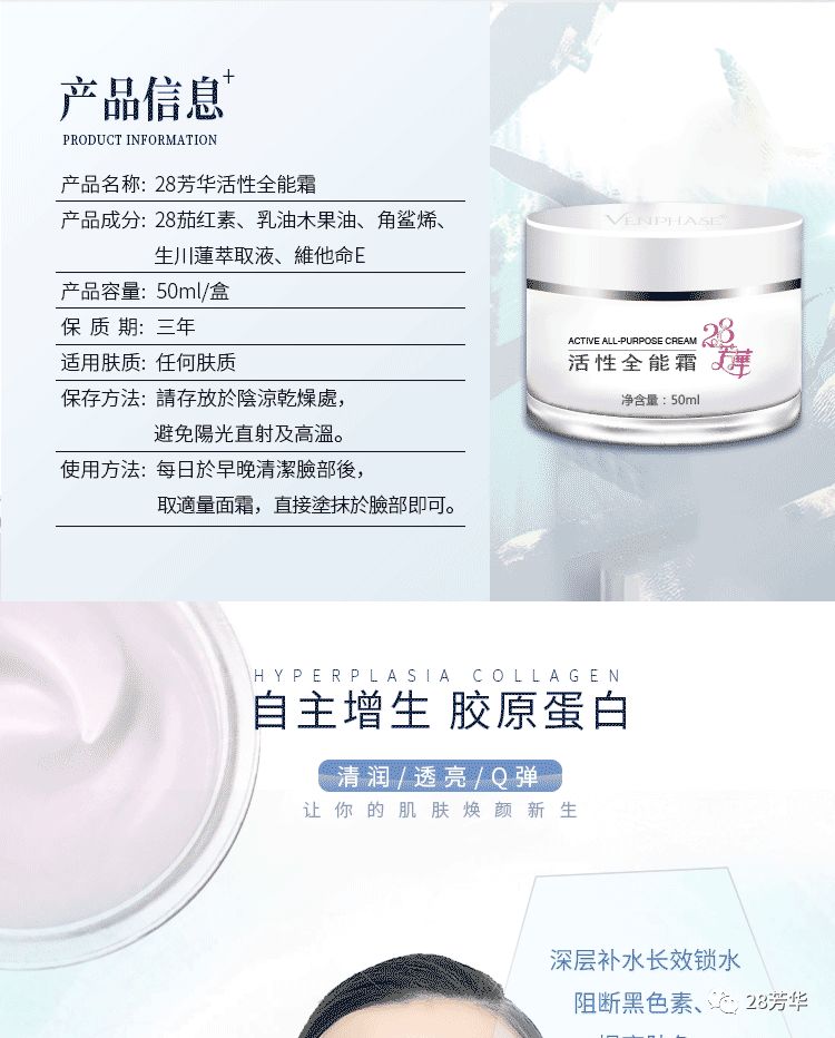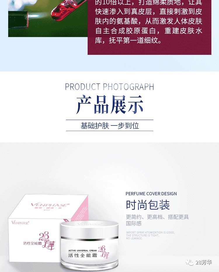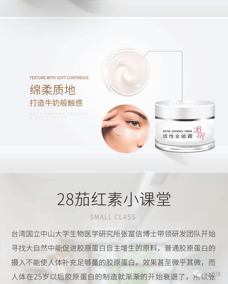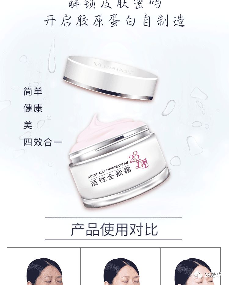 28芳华活性全能霜——自主增生胶原蛋白,让你的肌肤焕颜新生。