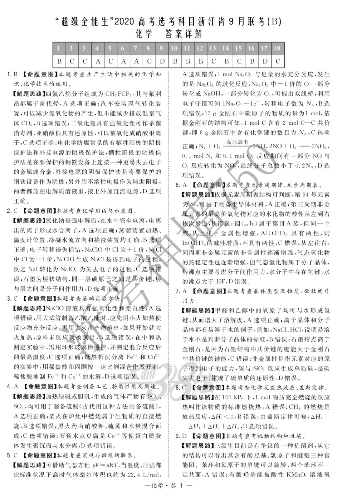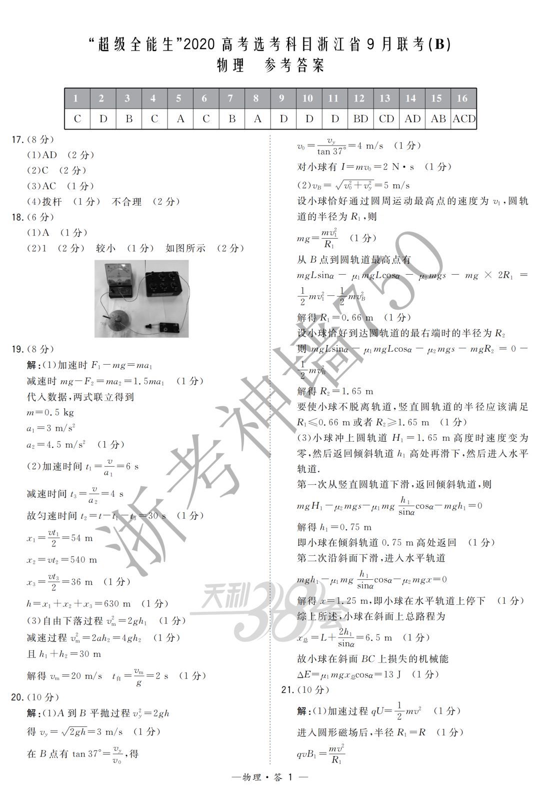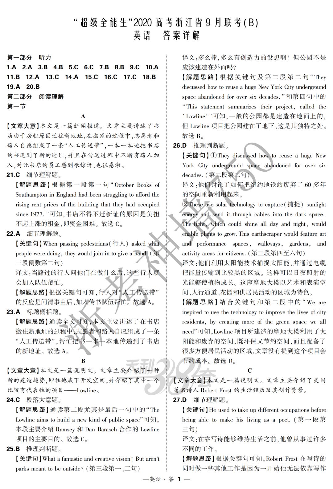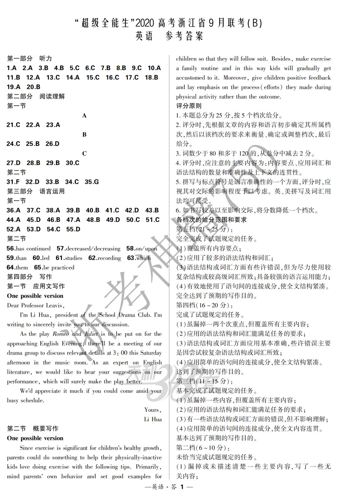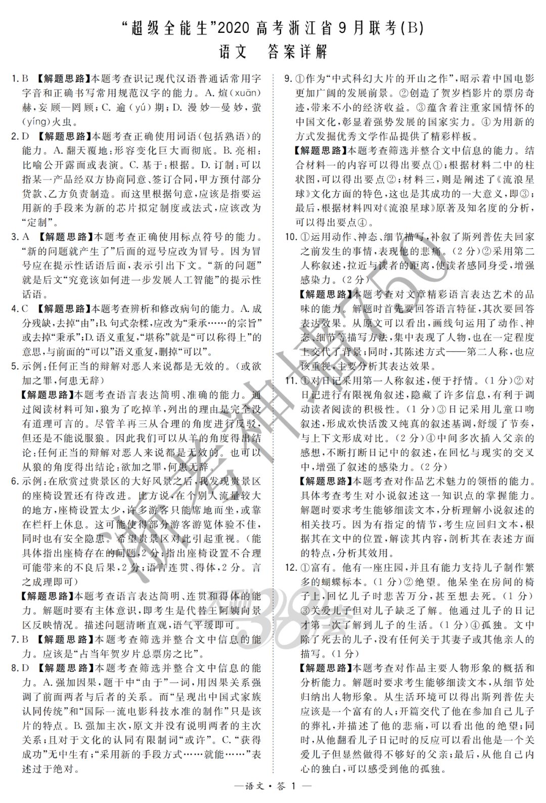 【完整10科】超级全能生2020高考浙江省9月联考(B)