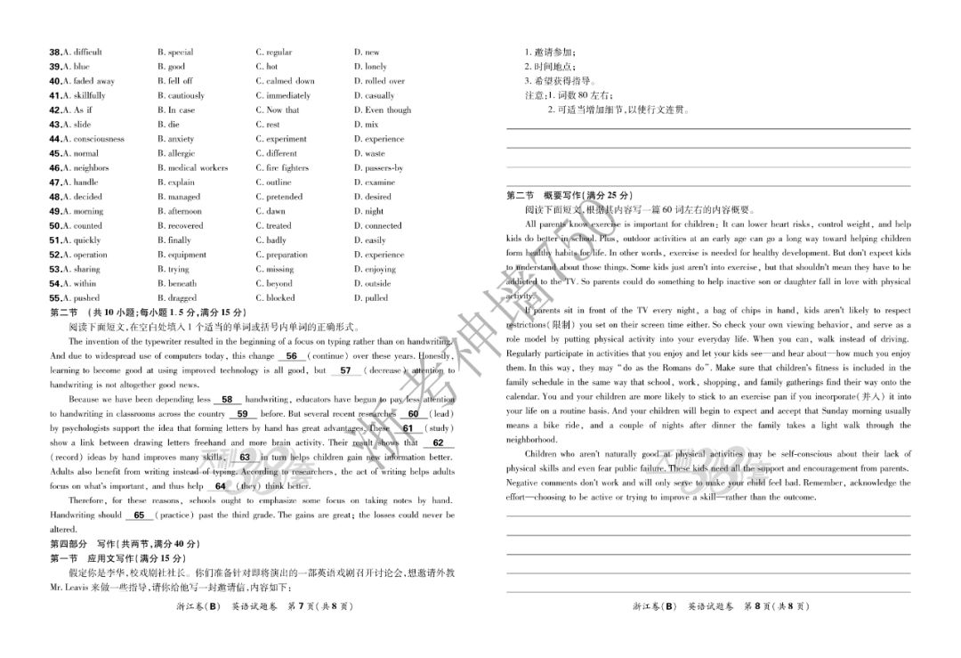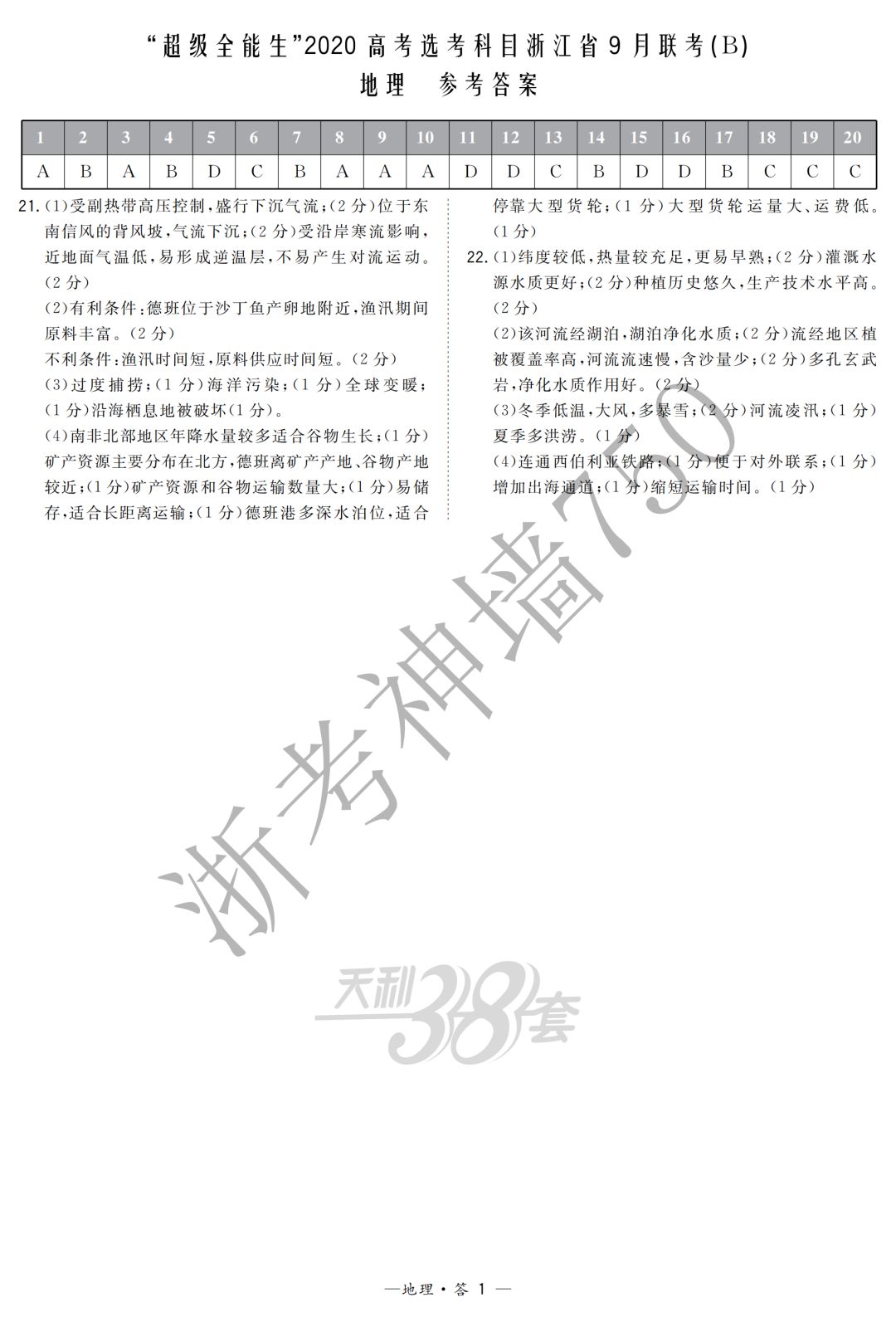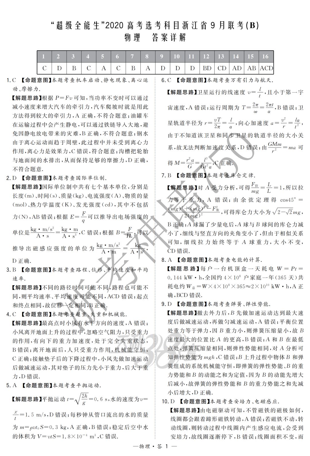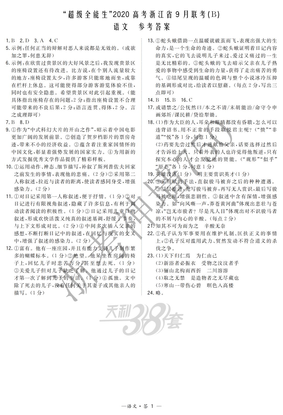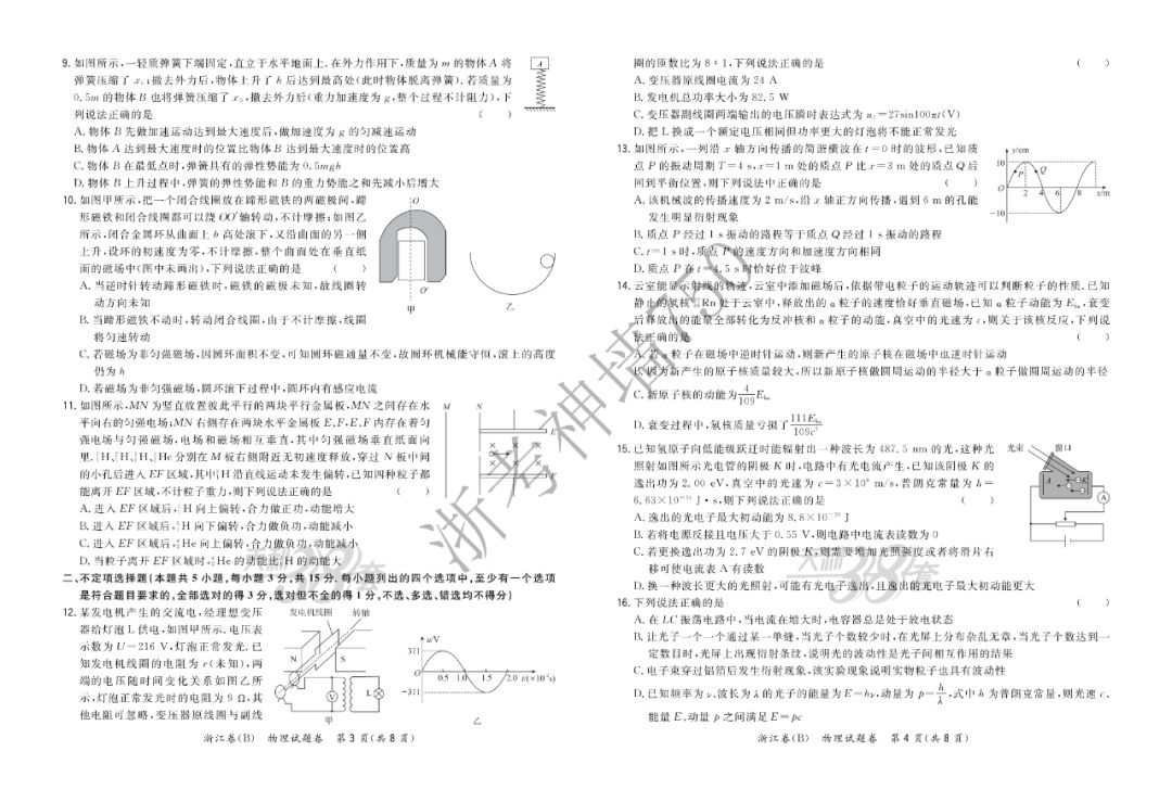 【完整10科】超级全能生2020高考浙江省9月联考(B)