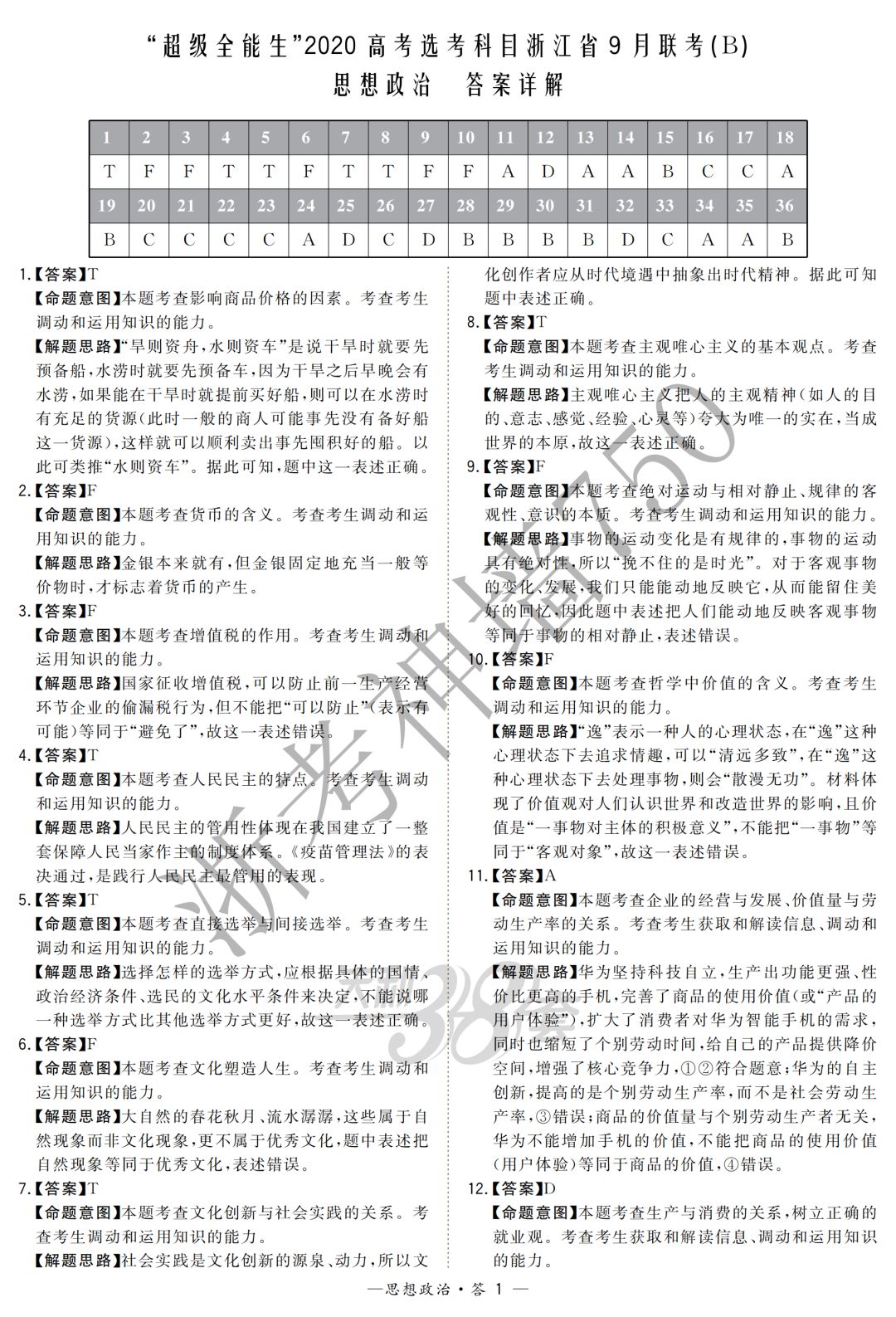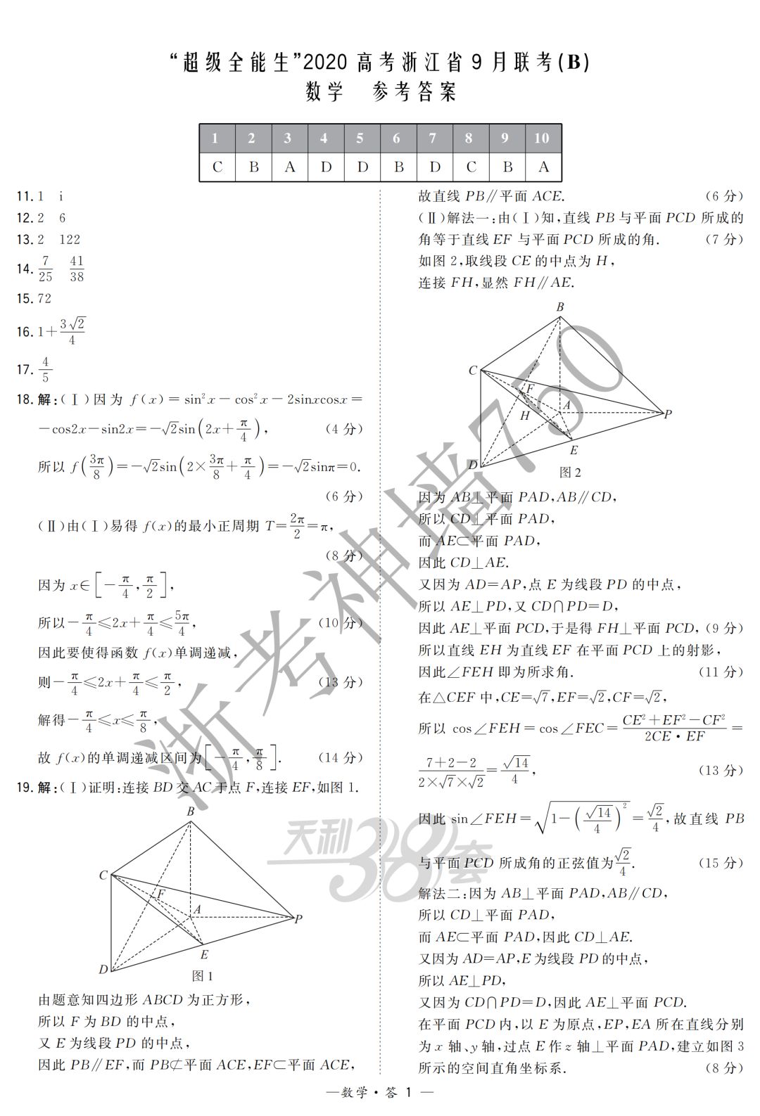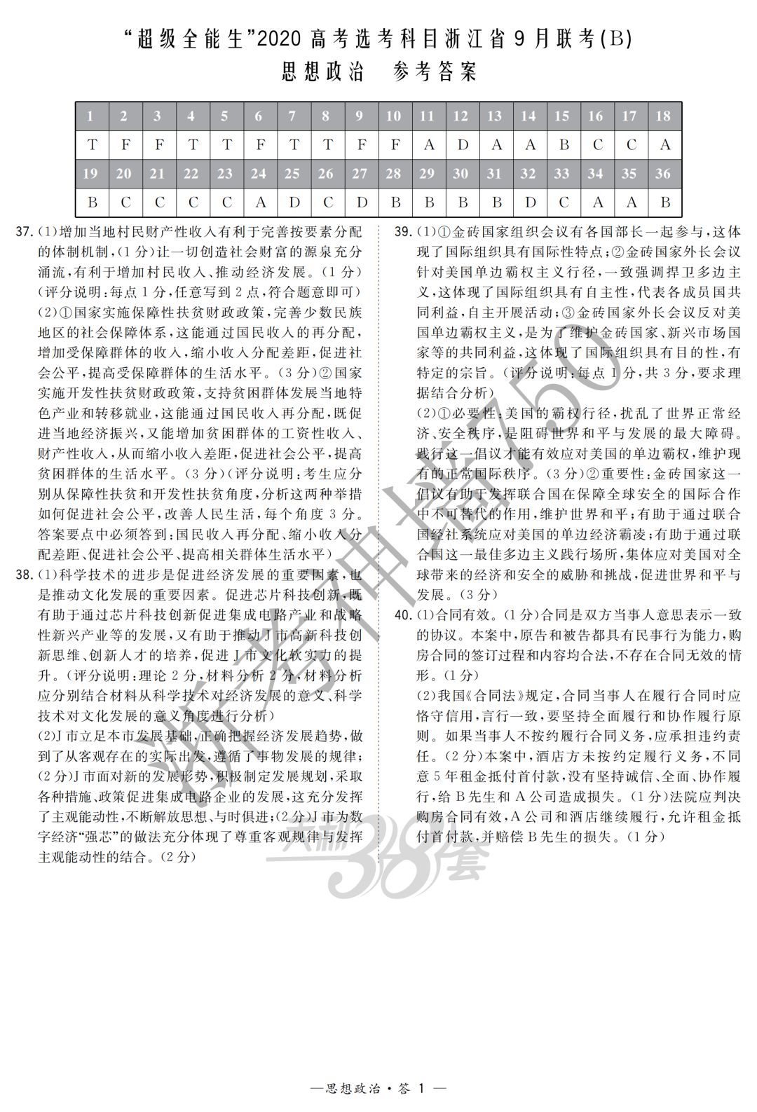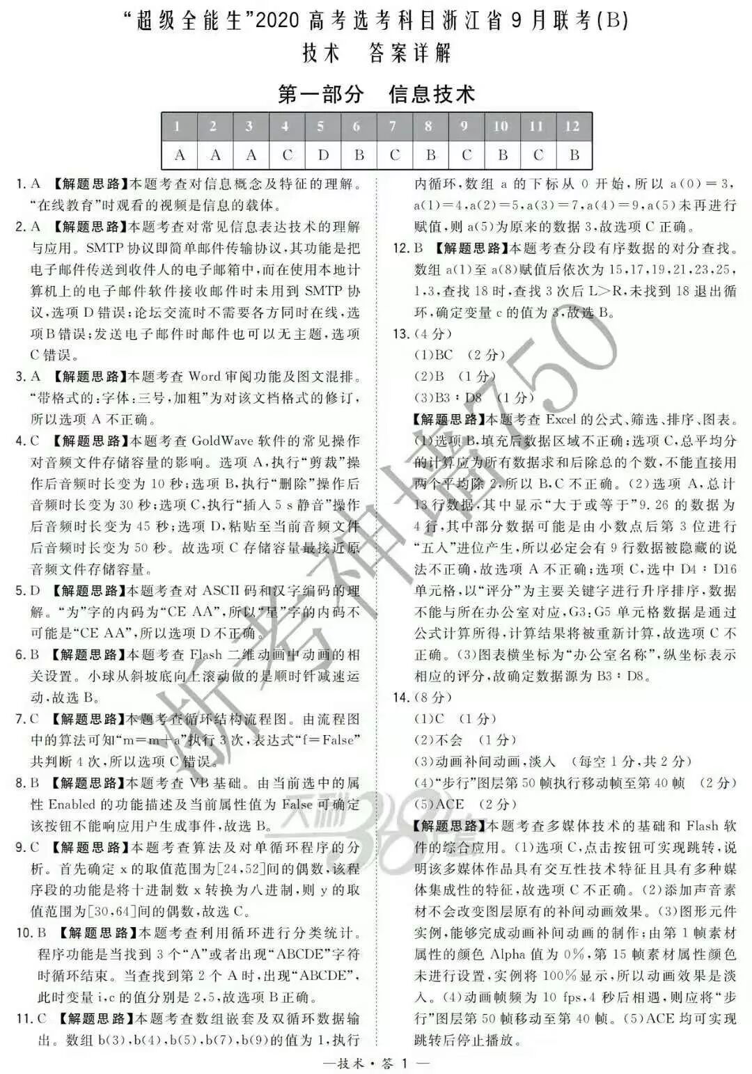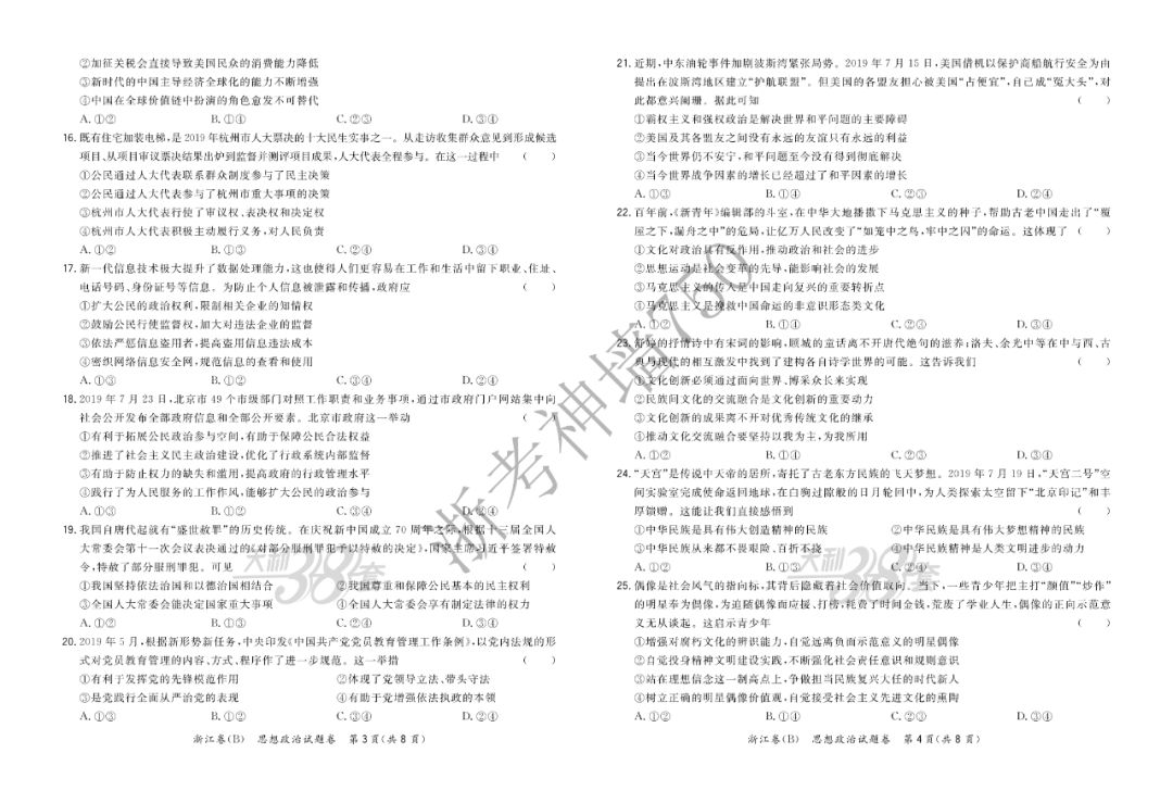 【完整10科】超级全能生2020高考浙江省9月联考(B)