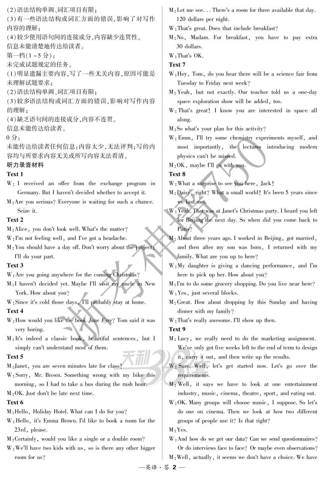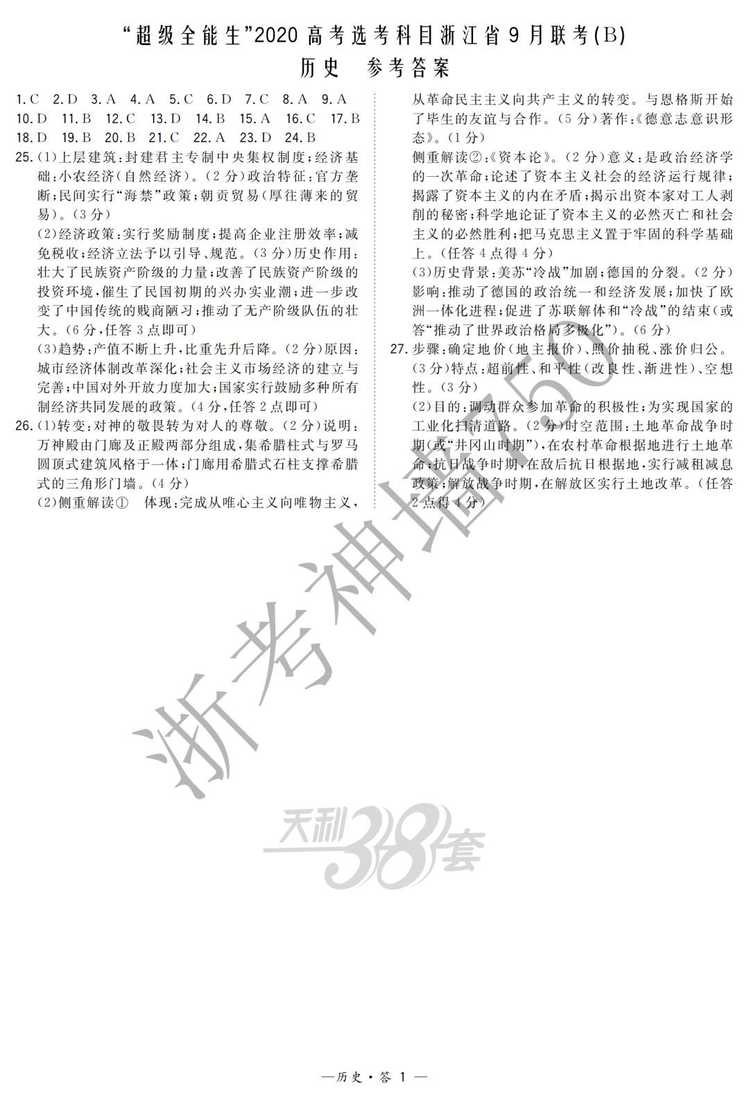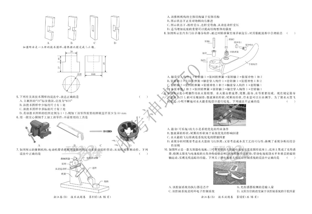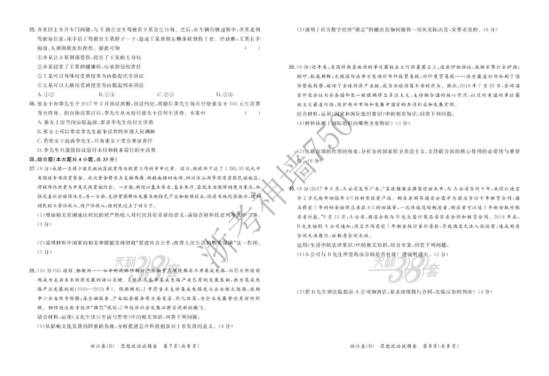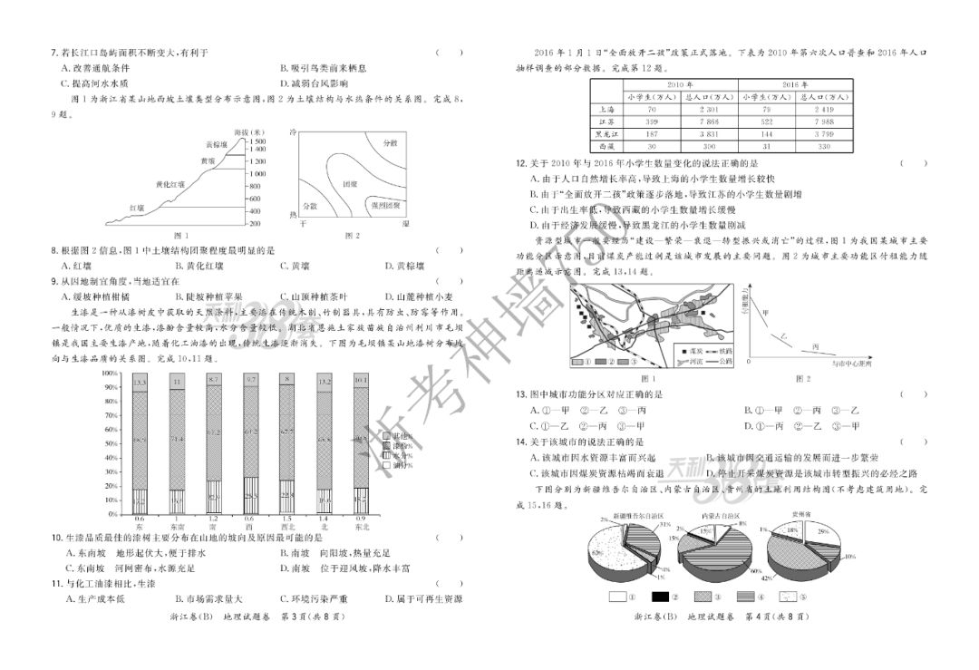 【完整十科】(含赋分表)浙江教育绿色评价联盟适应性试卷