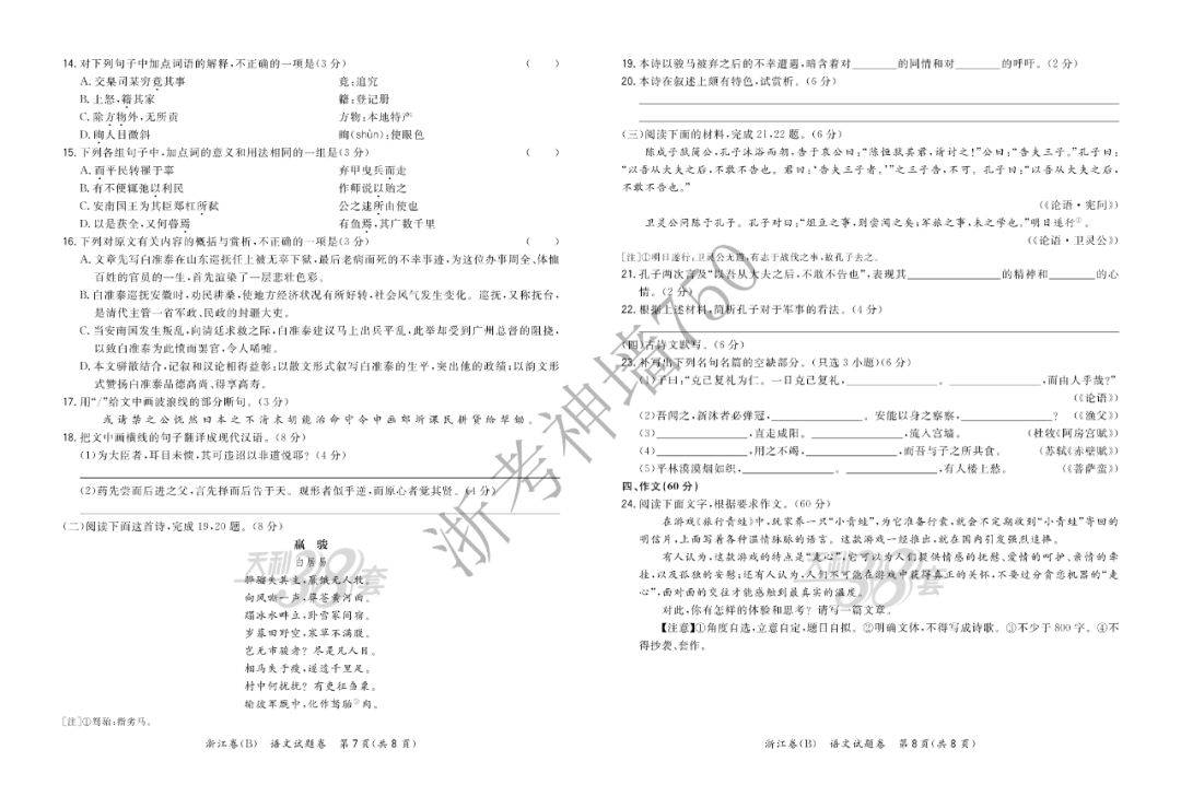 需要电子稿,点击试题领取指南语文