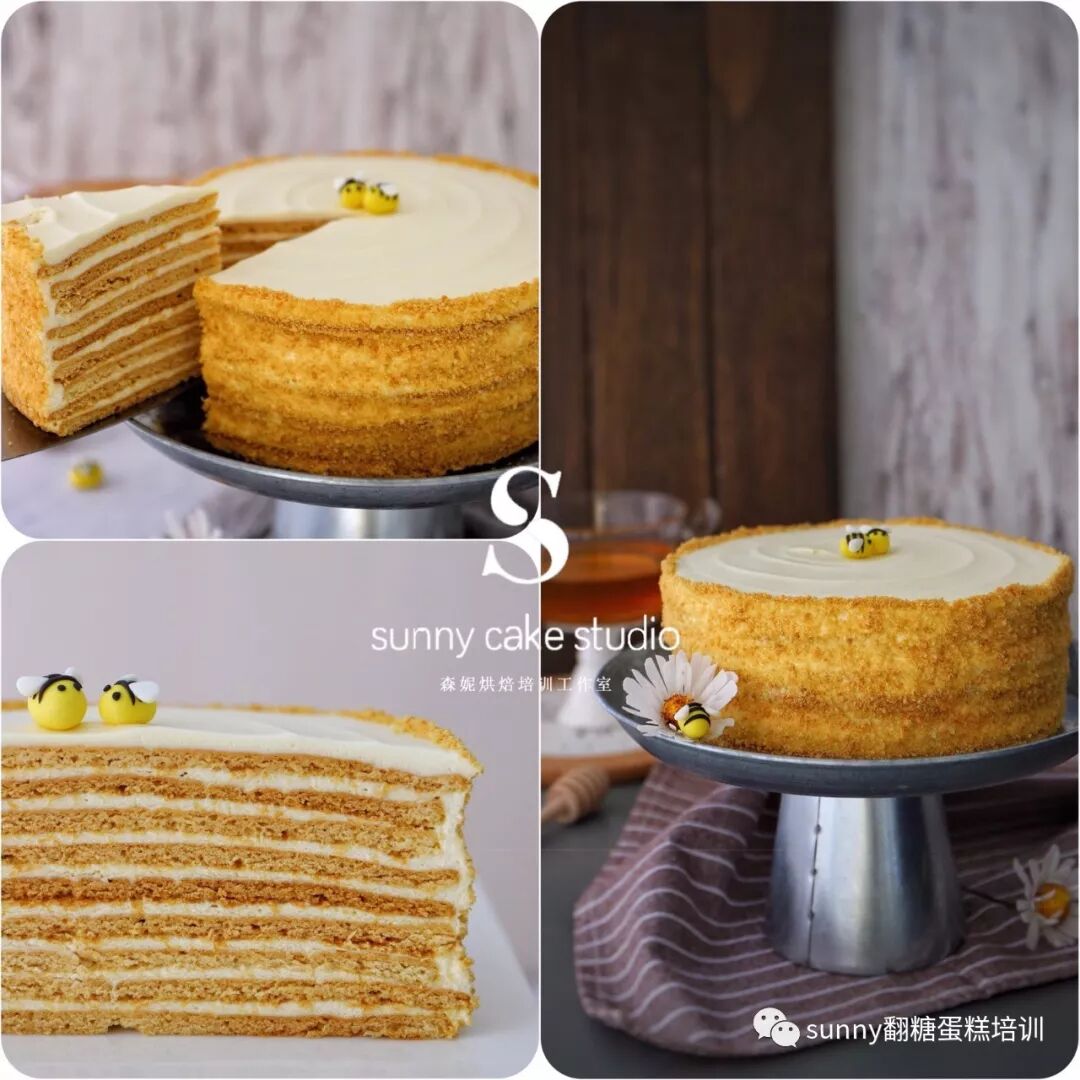 1、俄罗斯千层蛋糕:蛋糕胚制作、奶油奶酪霜的制作、蛋糕表面装饰技巧。