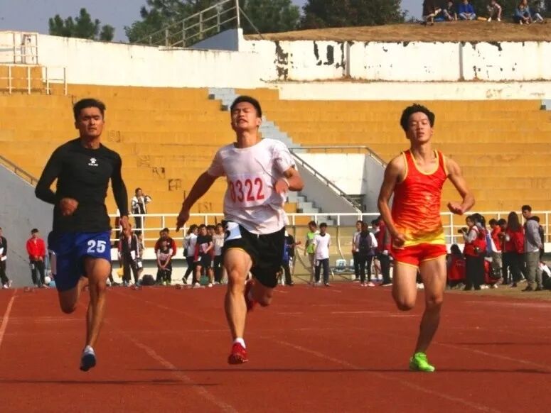上午9时8分,第一项——100米短跑,极其考验选手的爆发力。比赛开始前,阿不都海力力早早地在起跑线前不断地练习起跑冲刺,快速进入比赛状态。“各就位”一声响起,阿不都海力力脚尖一立,绷紧腿部肌肉,枪声响起,其后脚一蹬,如猎豹追逐猎物一样向着终点线飞去。