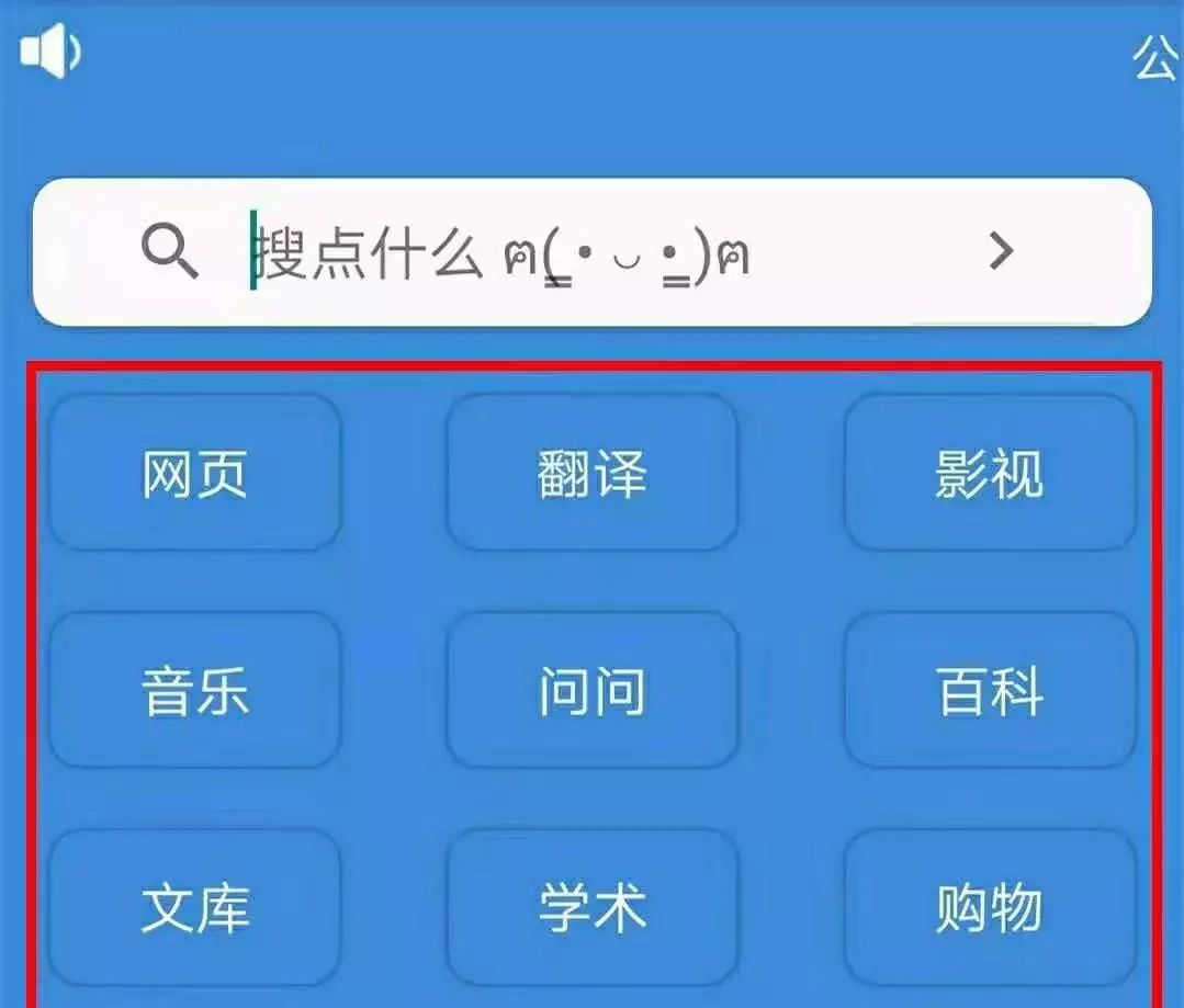 进入软件,可以看到有“网页”、“翻译”、“影视”、“音乐”、“文库”、“问问”、“百科”、“学术”和“购物”等九大模块,非常清爽。