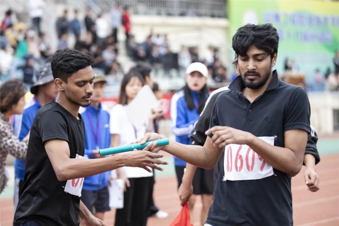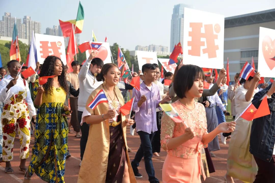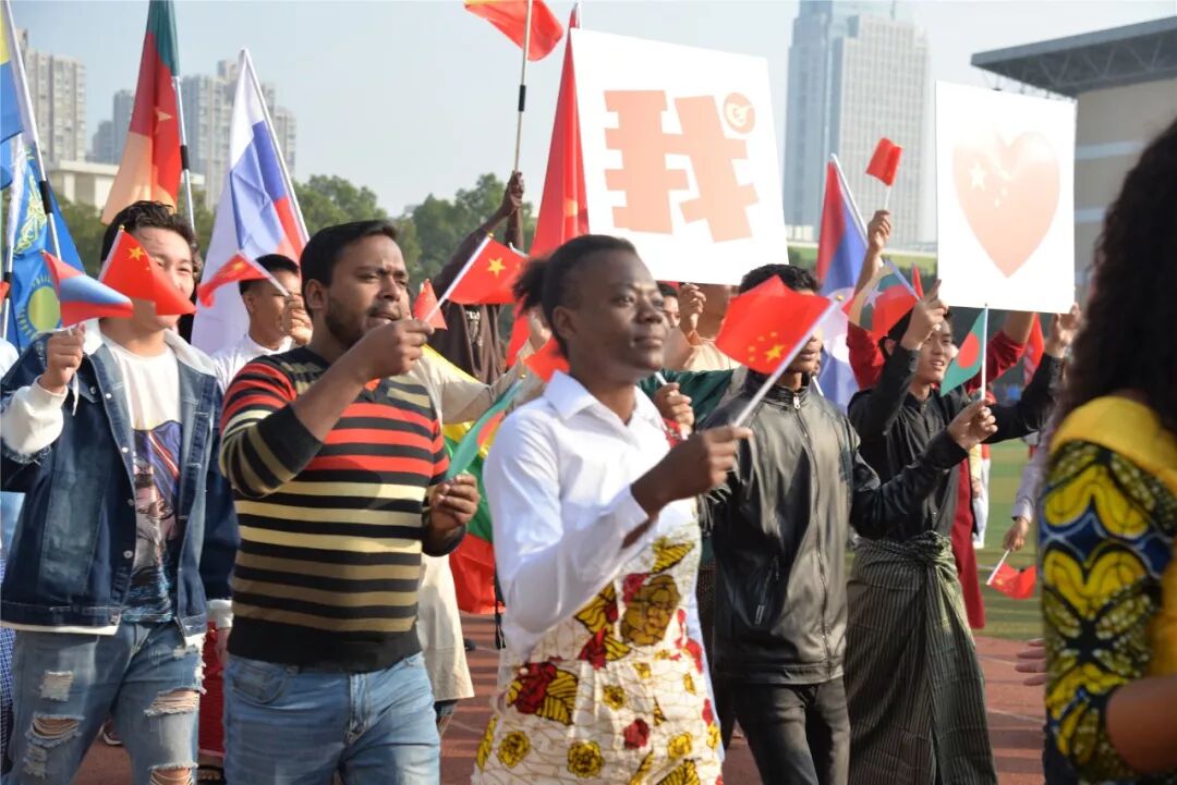 “同舟嘛共济海让路号子嘛一喊浪靠边,百舸嘛争流千帆竞。”歌声深情嘹亮!留学生代表队和中国代表队肩并肩,心连心,同舟共济、情谊飞扬!