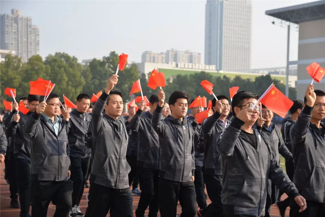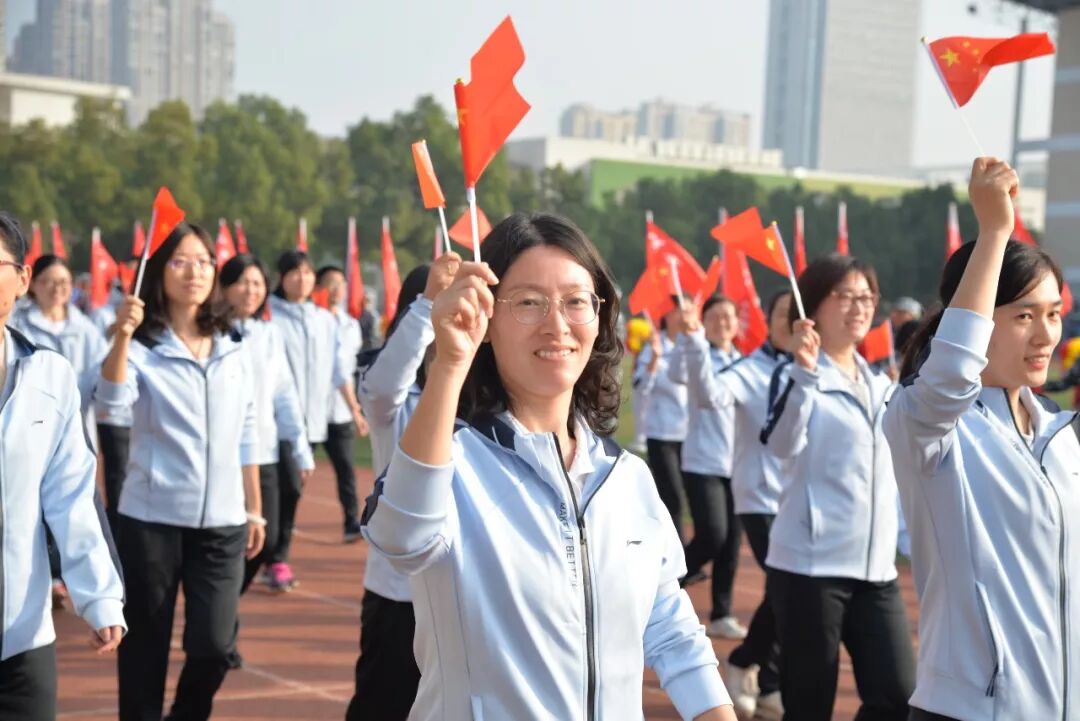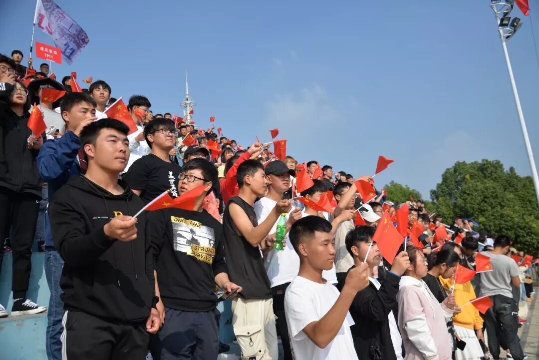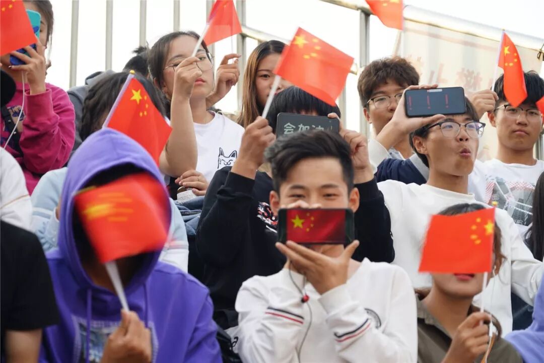 当歌声响起,田径场顿时化作一片红色的海洋。全体师生挥舞着国旗,共唱《我和我的祖国》,用拳拳赤子之心,深情向祖国告白。