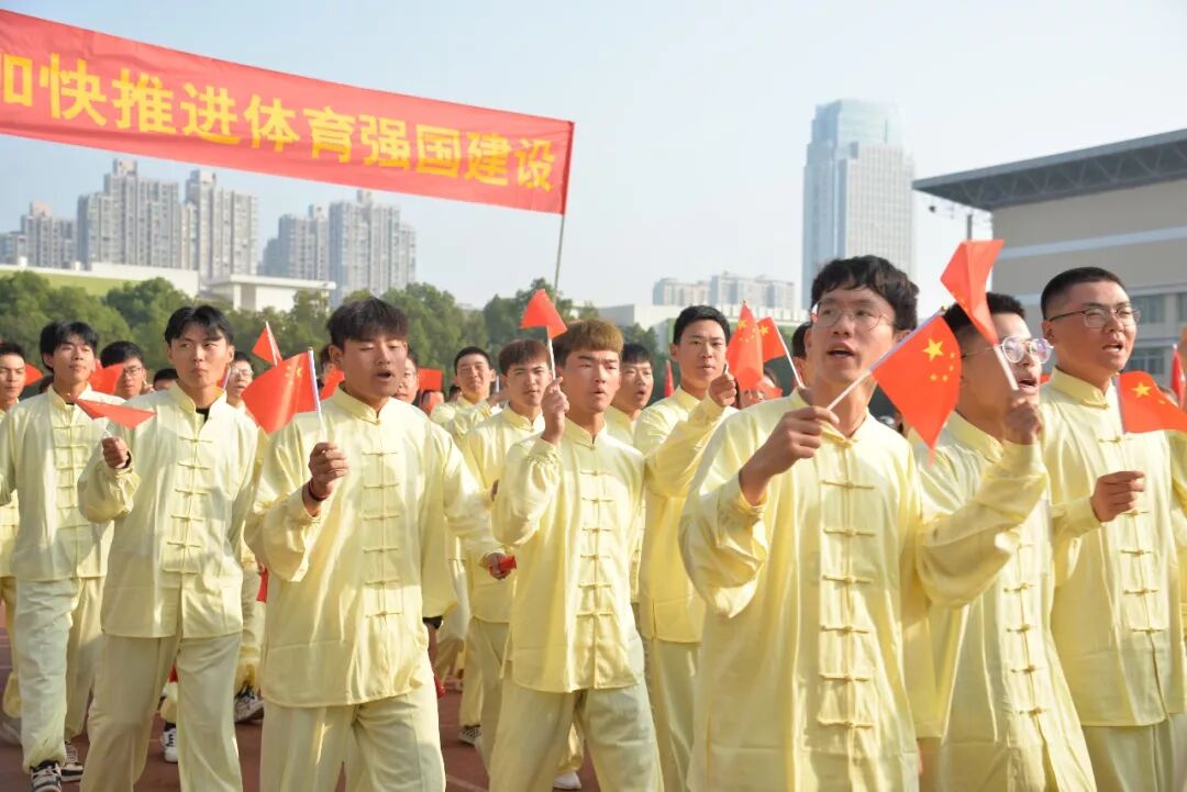 运动会会徽、彩旗队、花球方阵、裁判员方阵陆续进场,以昂扬的斗志,燃出不一样的青春色彩。