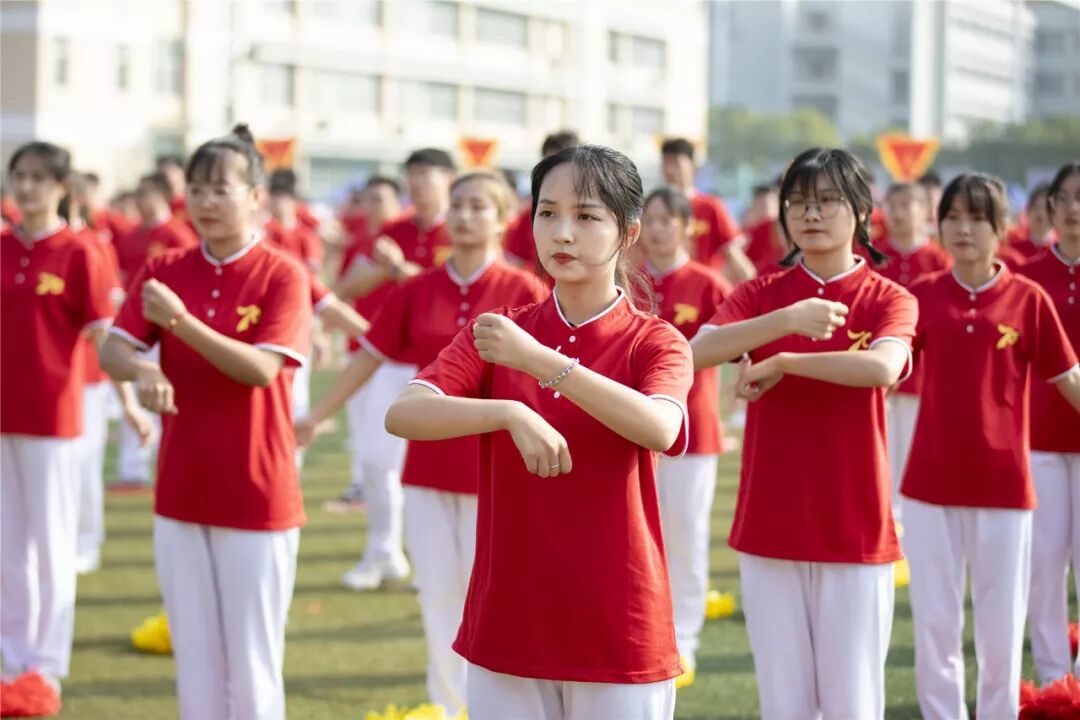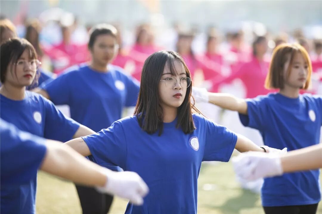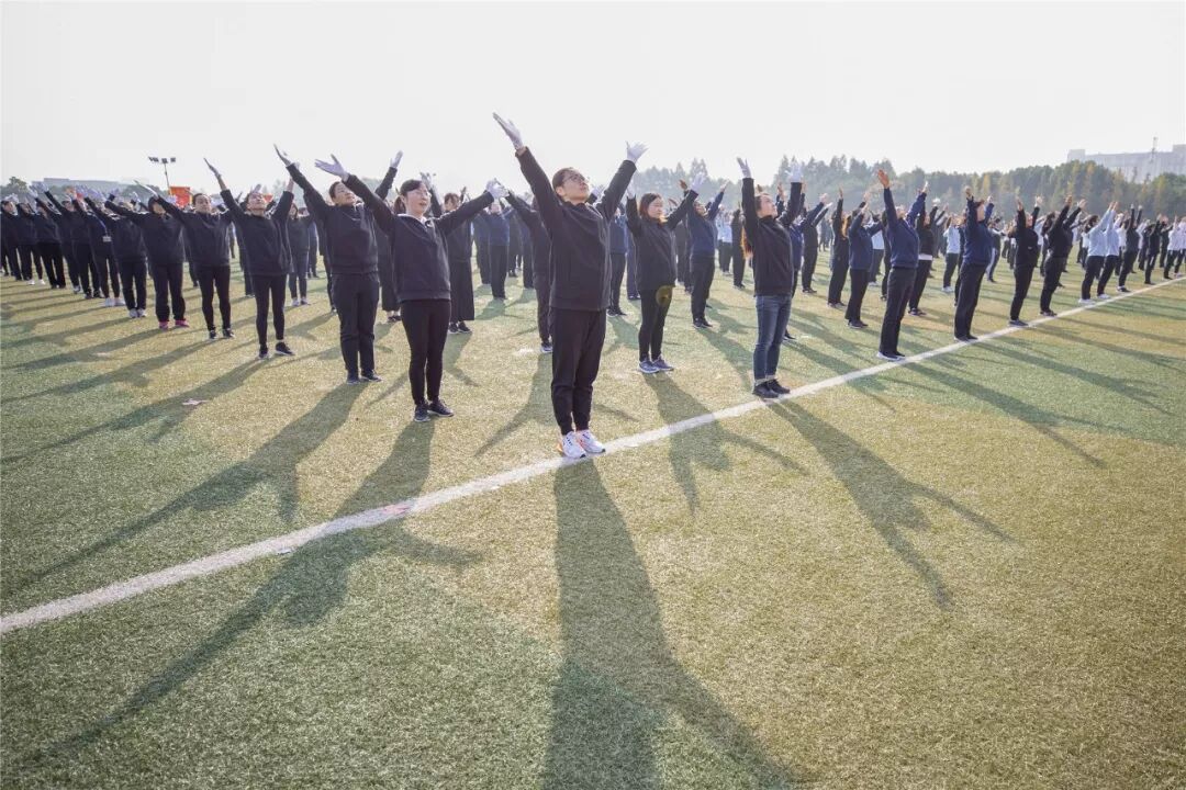 整齐划一的动作,笑意盈盈的脸庞。教职工和学生广播操共舞,共画工程好风景。