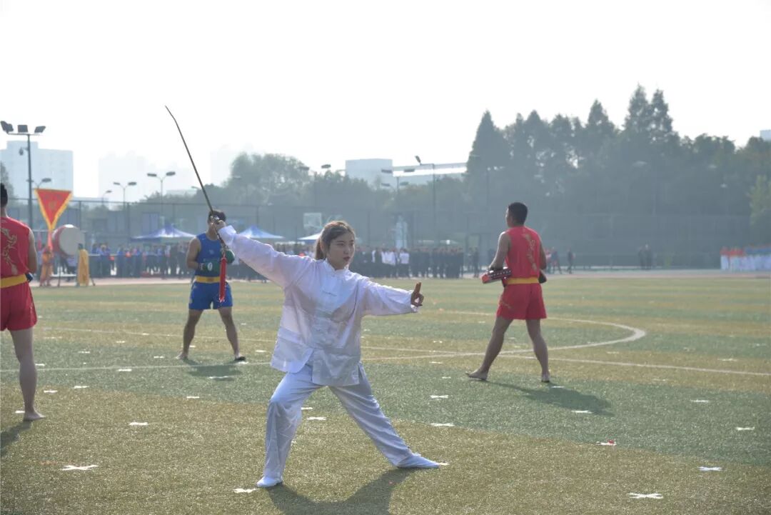 武术队动作苍劲有力,现场师生热血沸腾。静若伏虎,动若飞龙,缓若游云,疾若闪电,稳健而又潇洒!