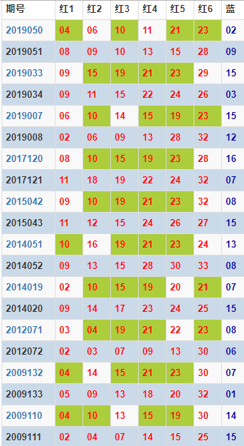 下图为历史上与本期任意3个红球号码相同期,以及他们下一期的开奖号码明细。由于数据量大只截取部分给彩友们参考,后面会给出和本期任意3红相同他们的所有下一期开奖数据总统计图。