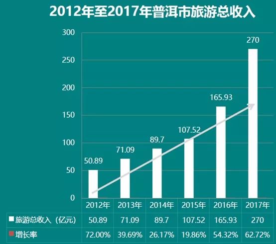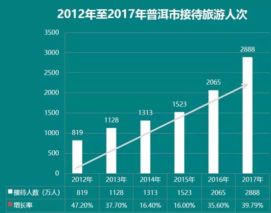 其中,2017年普洱市接待旅游人次高达2888万人次,同比增长39.79%;