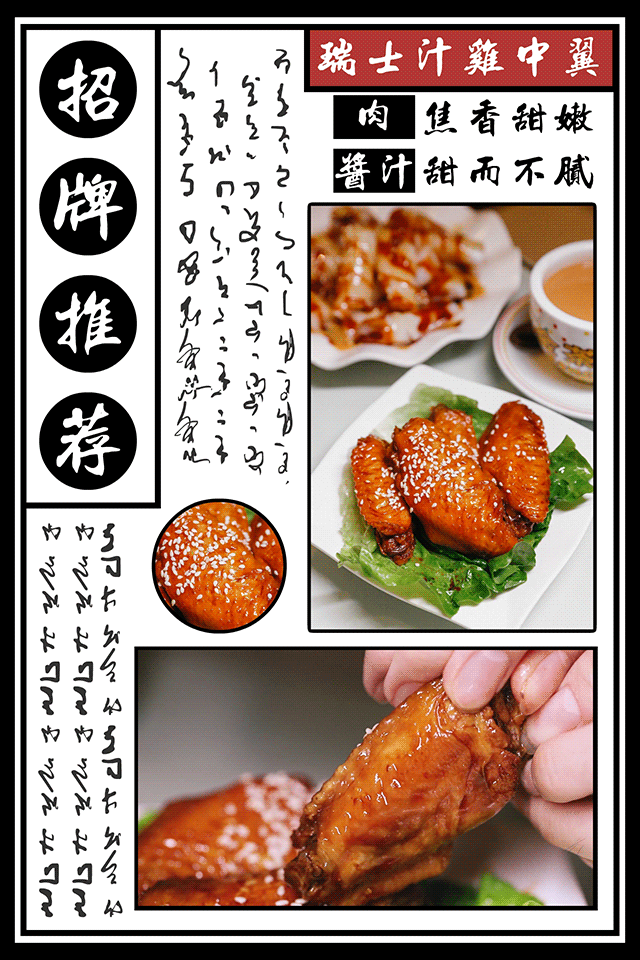 除了多士、可颂,更有口味带点辣与咸口的炸鸡中翼,相比瑞士做法更不会腻哦~