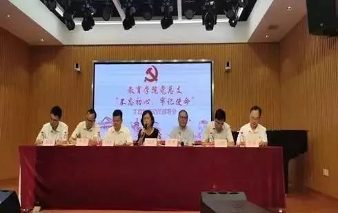 副校长马骏以“不忘教育初心,牢记为党育人,为国育才使命,为办好人民满意的师范教育贡献力量”为题领学:我们要立足以人民为中心的发展理念,深刻领会习近平新时代中国特色社会主义思想的实质内涵,以习近平总书记关于教育的重要论述为指导加快推进学校新师范建设,坚持把立德树人作为教育的根本任务;坚持社会主义办学方向作为发展教育的根本导向;坚持以人民为中心作为发展教育的根本目的;坚持把教师队伍建设作为发展教育的根本基础;坚持党的全面领导作为发展教育的根本保障。