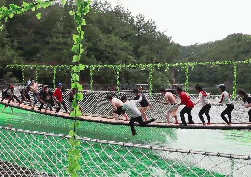 网红项目2:摇桥让我们一起摇啊摇啊摇~落水湿身有点妙!超考验平衡力与技巧,摇起来保准你止不住的笑!