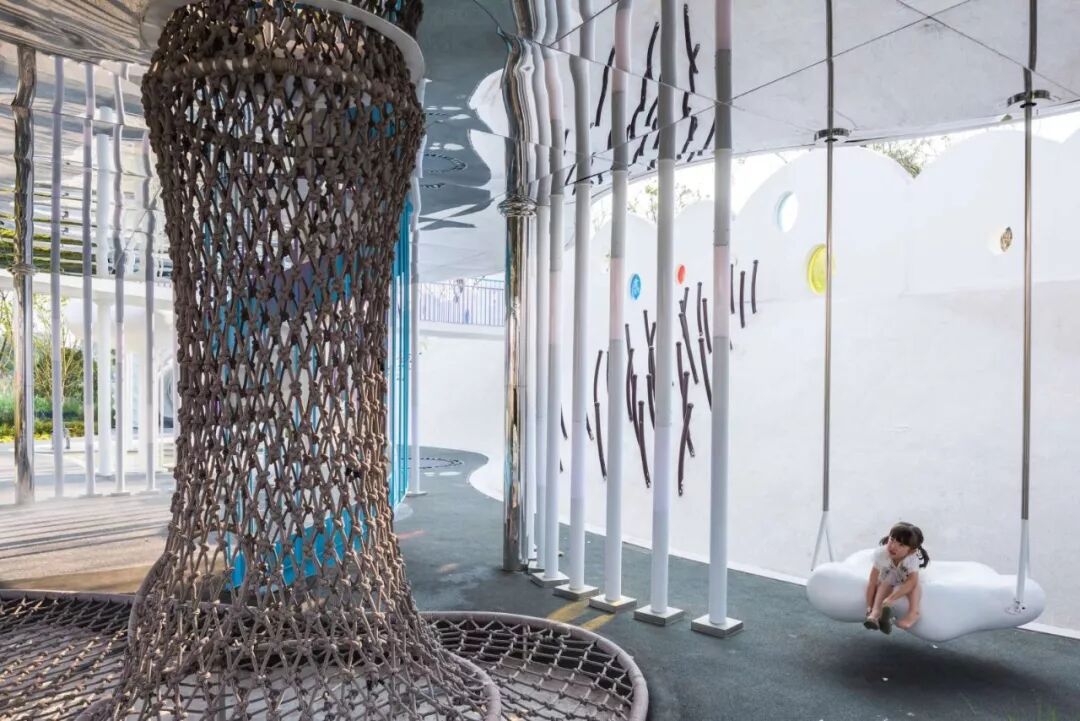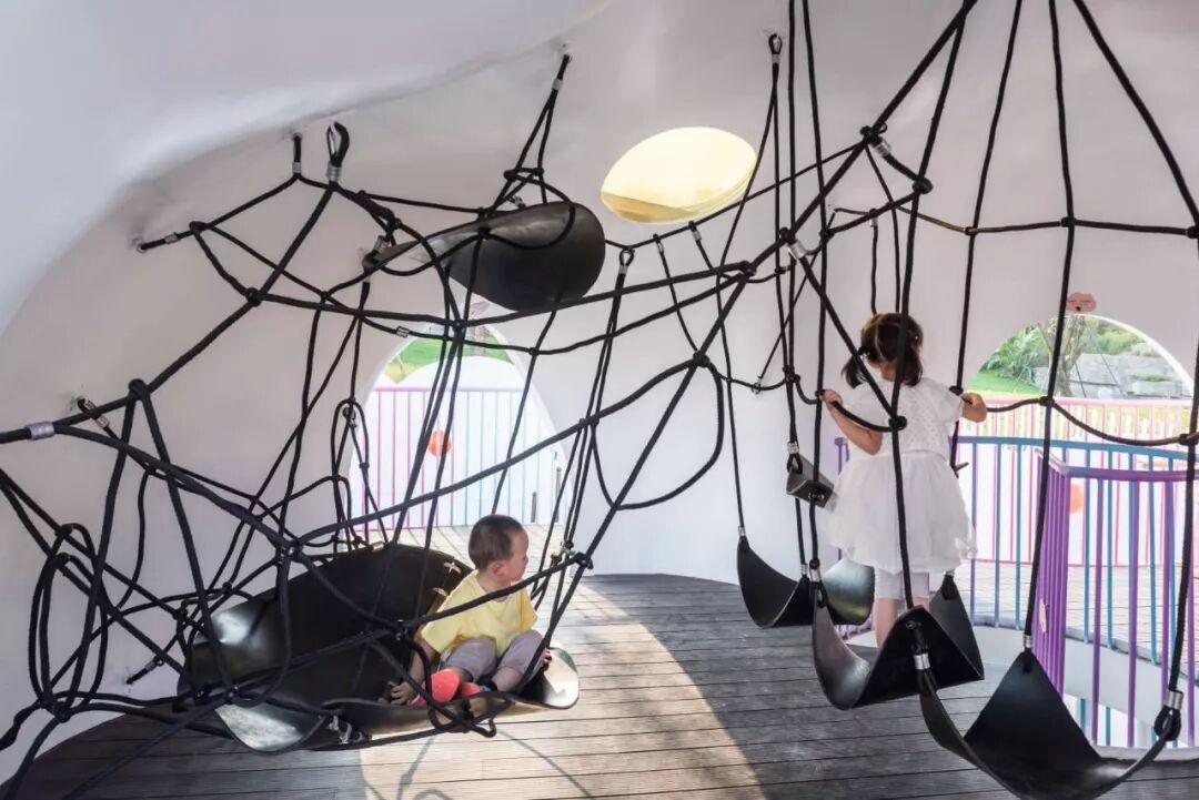 ▼云朵树屋内部设计了各种儿童趣味秋千