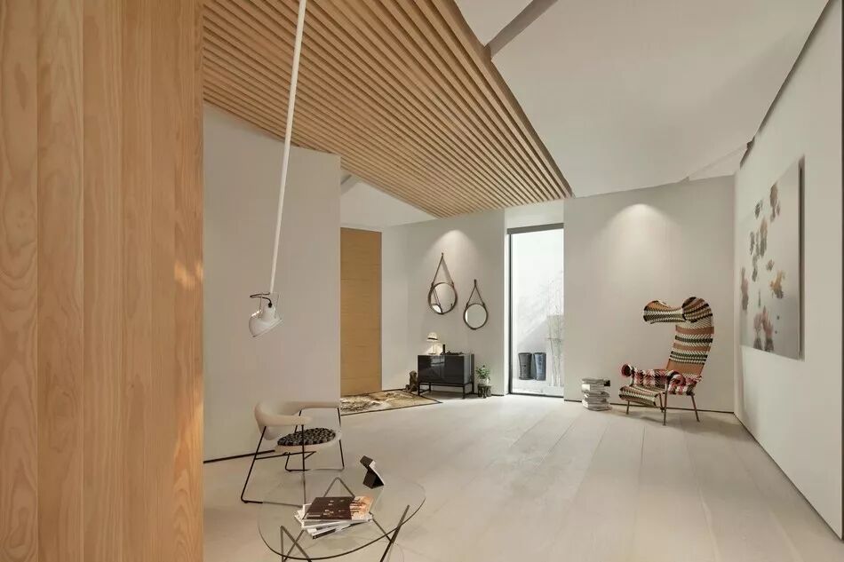 建筑内部的空间设计以及软装风格偏现代化,室内色调简单,只有原木色、白色以及黑色,艺术感与整体感十足。