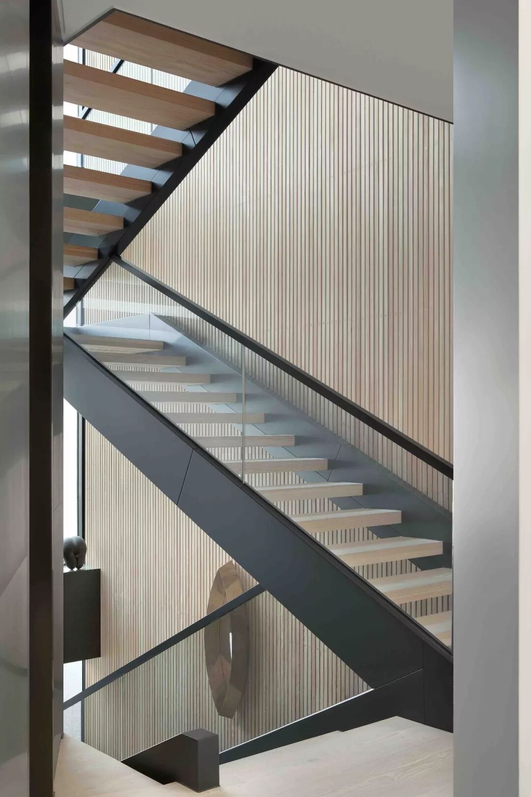 自然光线能给人带来最舒服的感官享受,楼梯在实现功能性的同时,也兼顾了部分采光。镂空的墙体设计,光斑散落下来的样子也十分具有美感。