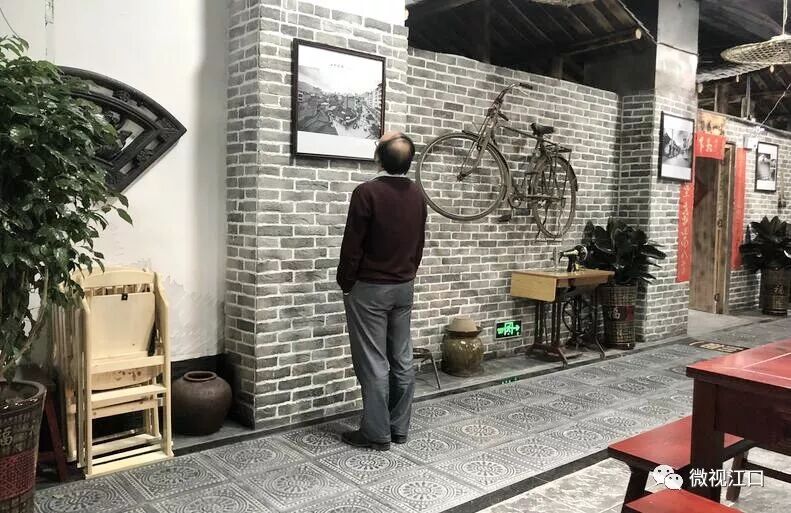 这里的一砖一瓦,一饰一物乃至餐桌、碗筷都带着老江口印记这些从民间收集来的老物件,款款透着怀旧气息在那里静静地诉说着逝去的光阴故事你看啊,这位仰头驻足的人儿