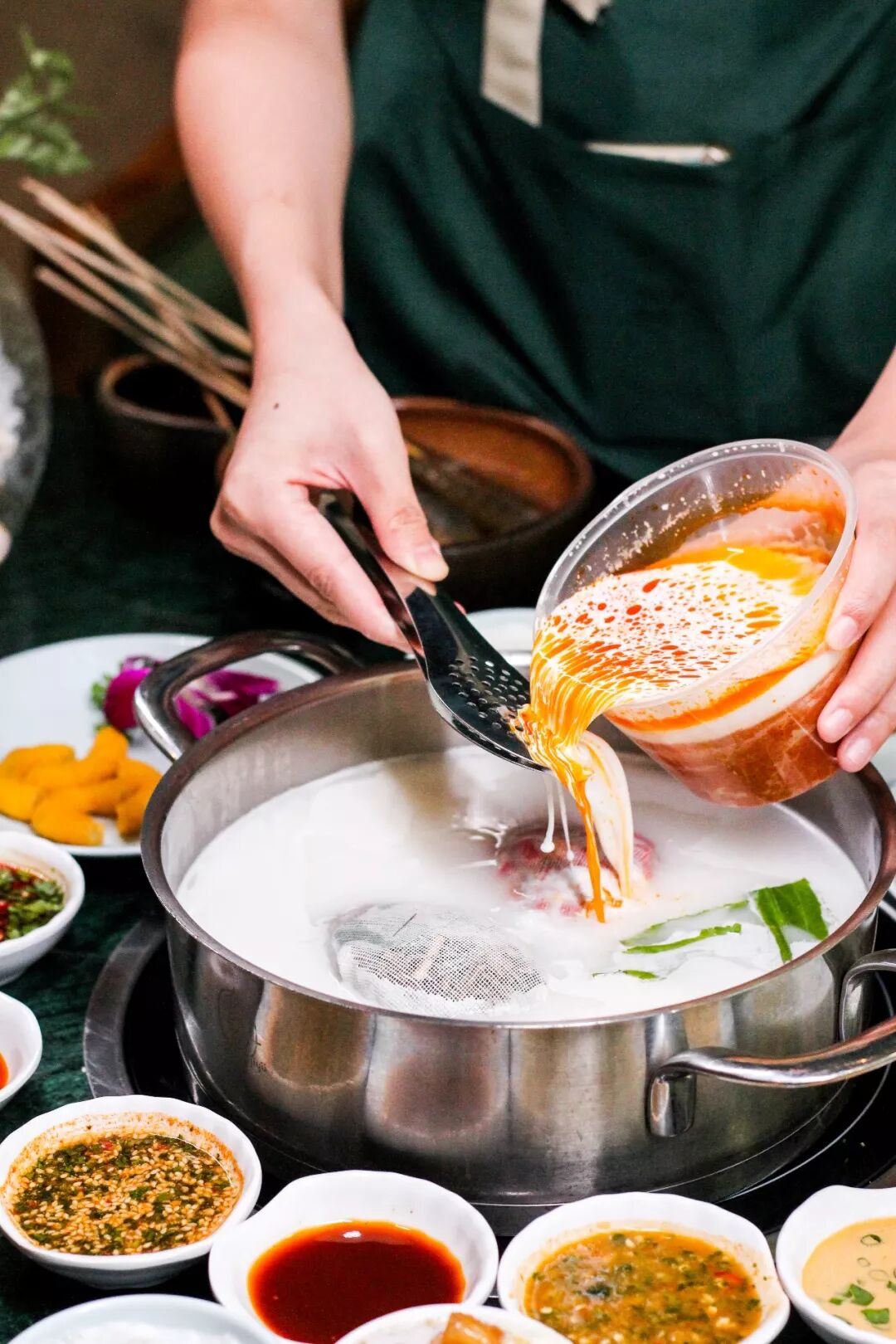 说起泰式风情,不能错过的当然是冬阴功汤了!用熬制四个小时的鲤鱼汤打底,依次放入泰国香菜、香料包、辣椒包,最后再加入冬阴功汤料,滋味好得不得了!