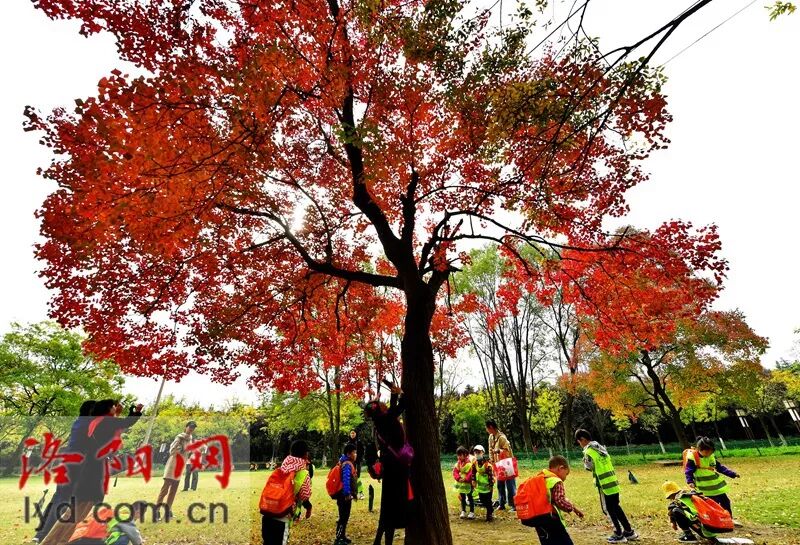 今日,隋唐城遗址植物园里,几株高大挺拔的乌桕(jiù)飞霞流丹,染红了一片天。