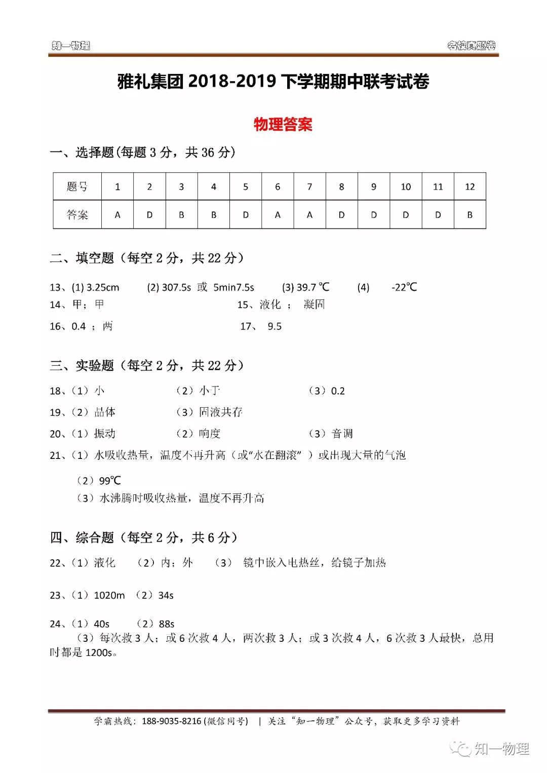 知一物理微课堂·期中考试冲刺微课(八上)-雅礼卷