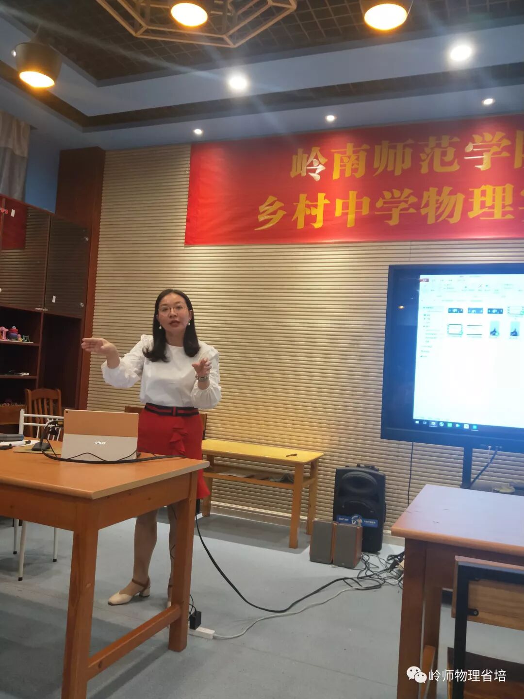 2019年10月22日,湛江港城中学尤小蓉老师来到岭南师范学院给参加广东省中学物理骨干老师培训班的老师讲课,整个过程讲得非常精彩,生动。